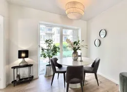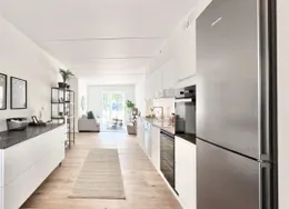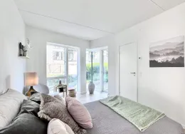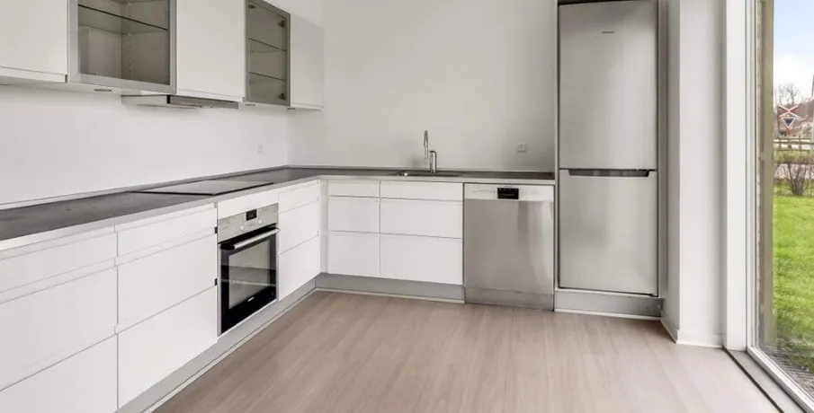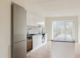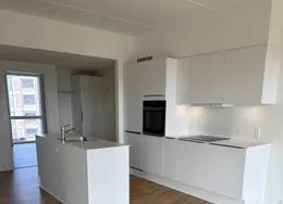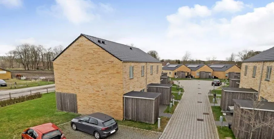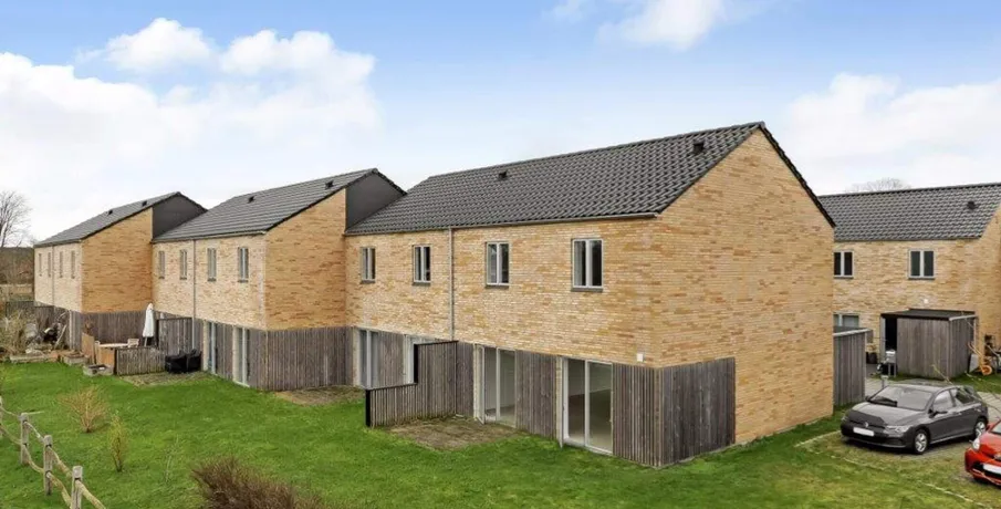 LINDVEDHAVE. Nu udlejes de skønne 4-værelses rækkehuse i det børnevenlige Lindvedhave, som er beliggende tæt på masser af handlemuligheder, motorvejsnettet og byen.. Indvendigt indeholder de 4-værelses rækkehuse i to plan: entré, bryggers med gæstetoilet samt vaske- og tørremaskine, og stort, lyst og åbent køkken/alrum. På 1. salen findes tre gode værelser, samt et stort badeværelse med bruseniche. Der er gulvvarme i hele rækkehuset.. • De nye 2-plansboliger er bygget efter solide principper med fokus på lavenergi. De opføres i smukke blødstrøgne teglsten, taget er ægte sorte tegl og giver herved boligerne et stramt, men roligt udtryk. De ydre rammer her et lavt niveau af vedligehold, med moderne og funktionelt look og sætter en standard der naturligvis er videreført inde i boligerne.. • I stueplan er praktisk indrettet med entre, stor stue og køkken/ alrum i et, men med god adskillelse, gæstetoilet med vaskesøjle og. opbevaringsrum undertrappen.. • 1.sal har 2 gode værelser, samt soveværelse forsynet med indbygget skabe. Her til kommer et lyst indrettet badeværelse med bruseniche og flere skabe.. • Alt indbygget skabs og køkken inventar i boligen er ad god kvalitet fra HTH, og hvidevare er fra Bosch, Siemens og Miele.. • Der er gulvvarme i stueetage samt i badeværelset på 1. sal.. • Boligerne er generelt meget lyse og indretningsvenlige, og har også eget redskabsskur/ depot på 4 m2.. • Der er parkeringspladser og gæsteparkering tilhørende området.. Skriv for fremvisning.