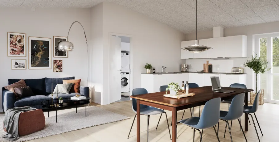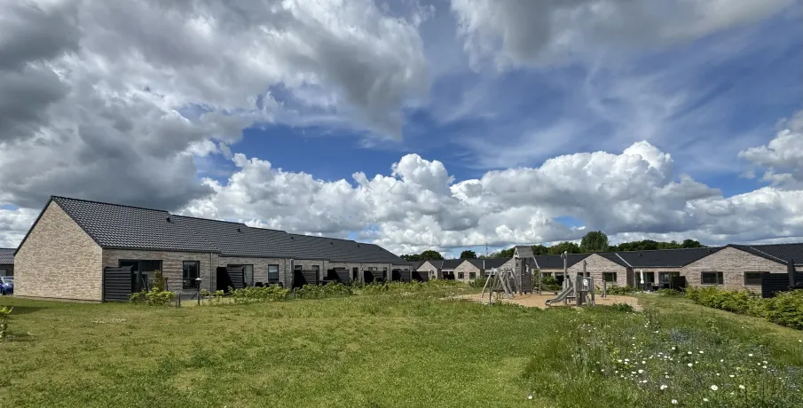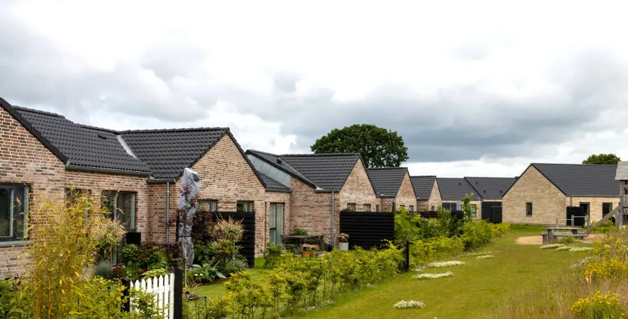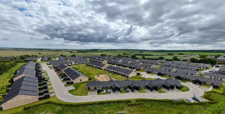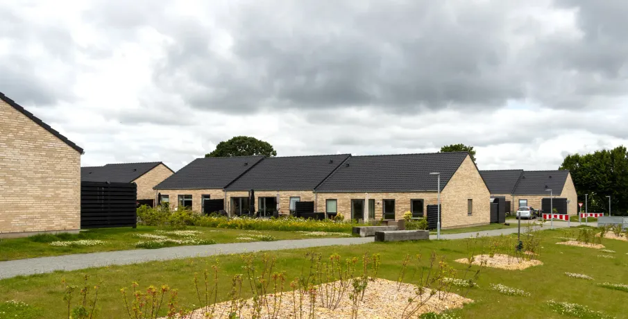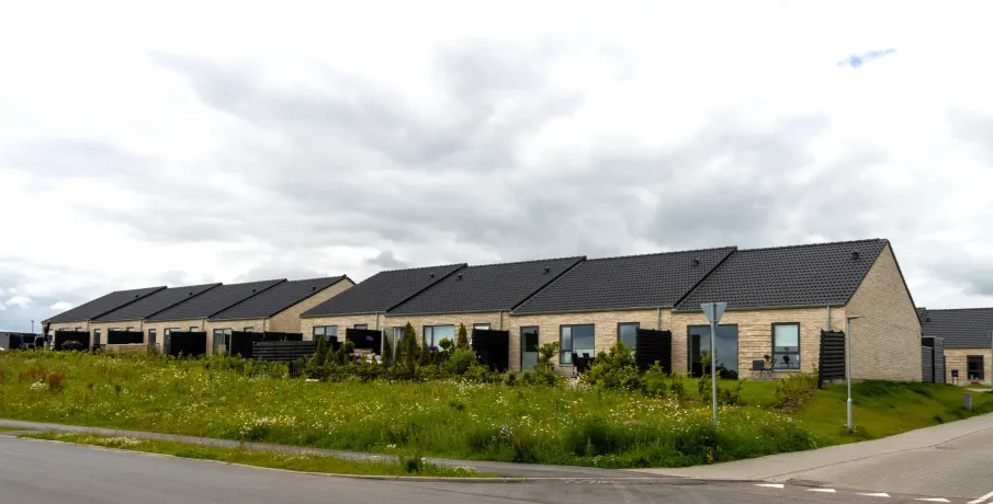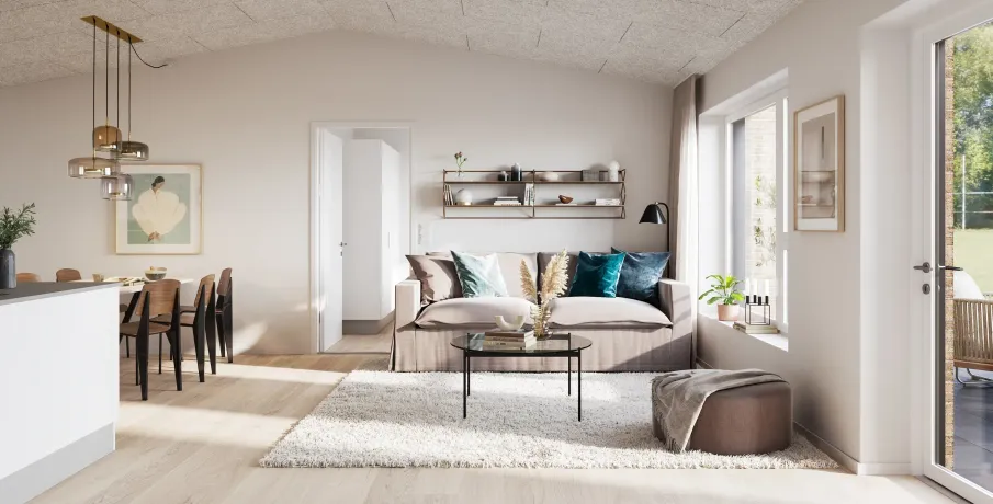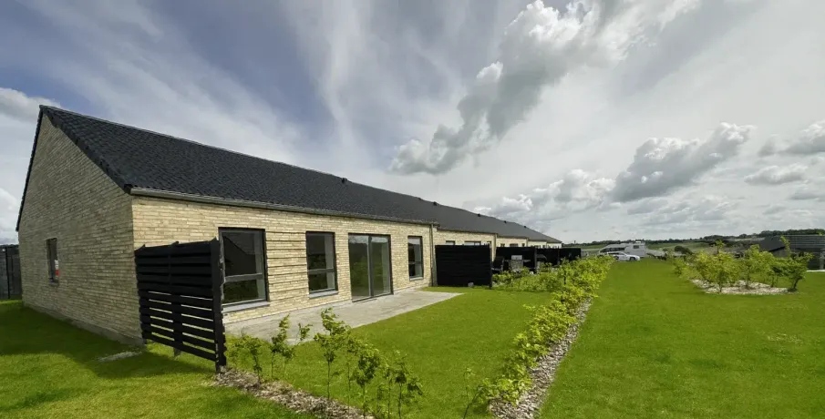 Velkommen til et lyst og moderne rækkehus, hvor hver kvadratmeter er tænkt til en funktionel og behagelig hverdag. Boligen er opført i 2022 og indrettet med sans for både æstetik og praktik – og naturligvis med alle hårde hvidevarer inkluderet.Når du træder ind, bliver du mødt af en rummelig entré, der også fungerer som bryggers med vaskesøjle og god opbevaringsplads. Herfra er der adgang til det stilrene badeværelse med bruseniche og lyse klinker, der giver et roligt udtryk.Husets hjerte er det store, åbne opholdsrum, hvor køkken, spiseplads og stue smelter sammen i ét. Det L-formede køkken giver både arbejdsplads og luft, mens de store vinduespartier lader dagslyset strømme ind og binder boligen sammen med den solrige terrasse og den private have.Det store soveværelse vender mod haven og har tre faste skabe – perfekt til at skabe ro og orden. I den anden ende af huset finder du endnu et værelse, der egner sig ideelt til børneværelse, gæsteværelse eller kontor.Foran huset har du egen parkeringsplads og et praktisk skur til opbevaring. Uderummet er nemt at holde, og du får både forhave og baghave – så du kan nyde solen fra morgen til aften.Praktisk infoAlle hårde hvidevarer medfølgerGulvvarme som styres via særskilte termostater i alle rumOpkrævning af forbrug sker direkte til forsyningsselskaberEgen have og flisebelagt terrasseSkur og privat parkeringsplads