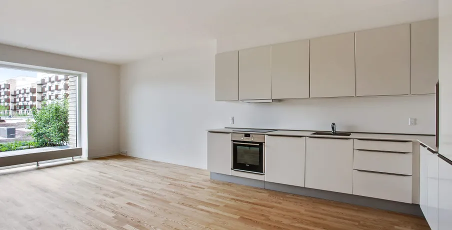 Lyse lejeboliger i naturskønne omgivelser med stor solrig altan Østeråparken byder på 200 skønne lejeboliger på Godsbanen i Aalborg – en attraktiv ny bydel, der er skudt op blandt togskinner og lysmaster og nu byder på grønne oaser og på sigt den fritlagte Østerå. Lejeboligerne er veldisponerede og indbydende med lyse trægulve og store vinduespartier fra gulv til loft, der lader dagslyset strømme ind. De har indbyggede skabe, der gør det let at møblere dine værelser, og mange af dem er desuden indrettet med et ekstra 3 m2 opbevaringsrum i forlængelse af soveværelset, der er oplagt at bruge som walk-in-closet. Hver bolig har sin egen store, solrige altan eller terrasse i stueetagen – ud mod det hyggelige gårdmiljø og den kommende å. Altanerne er afskærmet med glas, der giver læ, udsigt og et elegant udtryk på én gang. For at sikre mere privatliv er en af siderne holdt i en varm, bruneret aluminium. Østeråparken byder både på mindre 2- og 3-værelses lejligheder samt større 3-værelses lejligheder, der ud over altanen også har fransk altan i begge værelser. Der er altså plads til både børnefamilier, studerende, par og singler, hvilket skaber masser af liv og dynamik. Ejendommen er endvidere beliggende tæt på offentlige transportmidler, som bus og tog. Herudover er ejendommen beliggende midt i Aalborg Centrum tæt på indkøbsmuligheder, Musikkens Hus, Nordkraft, grønne parker m.m. OBS: Billederne kan være af en prøvebolig, og ikke den specifikke bolig.