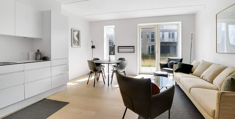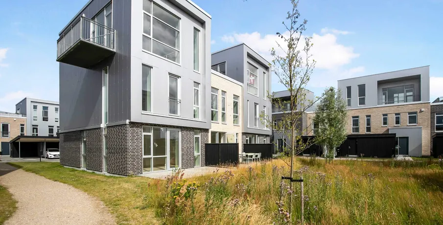 Sofiendalen Sofiendalen er det perfekte sted at bo for alle, der drømmer om at bo i pagt med naturen, uden at flytte væk fra byen. Her får du en nyopført bolig med en beliggenhed, der leverer på både natur og nærhed til byens centrum. De nyopførte boliger ligger i bydelen Sofiendal Enge, i den sydvestlige del af Aalborg. Bydelen er lille, fredelig og hyggelig, men samtidig er her alt, hvad man har brug for til daglig og i fritiden. Sofiendal Enge er en bydel, med fokus på grønne områder, som både skaber luft mellem boligerne og giver mulighed for udendørs nabofællesskaber. Samtidig er der en god adgang til natur og flot udsigt over området. Området ligger tæt på sportsfaciliteter med nem adgang til folkeskole og daginstitution, kun få kilometer fra midtbyens pulserende byliv, altså en bydel, der appellerer til mange forskellige mennesker og familier. Alle boliger har private udendørs opholdsarealer i form af egen terrasse, tagterrasse eller altan, og alle kan desuden benytte de indbydende, grønne fællesarealer. Alle boliger er funktionelt indrettet for at udnytte hver kvadratmeter, og der er lagt stor vægt på, at boligerne kræver et absolut minimum vedligeholdelse. OBS: Billederne kan være af en prøvebolig, og ikke den specifikke bolig.