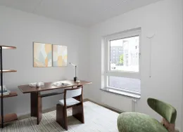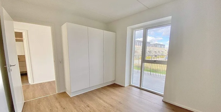 NYOPFØRT 3-VÆRELSES MED SYDVENDT ALTAN!. Drømmer du om en moderne, nyopført bolig i et af Aalborgs mest attraktive nye områder? Så er denne 3-værelses lejlighed på Poul Anker Bechs Vej måske lige noget for dig!. Lejligheden er bygget i kvalitetsmaterialer og byder på et stilrent og lyst køkken fra JKE med alt i moderne hvidevarer samt god skabsplads. Ved siden af køkkenet finder du et praktisk teknik- og depotrum med rigelig opbevaringsplads.. Fra køkkenet træder du ind i den store, lyse stue, der takket være store vinduespartier får masser af naturligt lys. Fra stuen har du direkte adgang til en skøn, sydvendt altan, hvor du kan nyde mange solrige timer.. De to soveværelser er rummelige og lyse, begge med indbyggede skabe, som giver godt med opbevaringsplads.. Badeværelset er elegant indrettet med smukke klinker, en rummelig bruseniche og en praktisk vaskesøjle.. Lejligheden har selvfølgelig gulvvarme i alle rum samt et ventilationsanlæg, der sikrer et behageligt indeklima året rundt.. Bygningen er sikret med låste opgange, og der er elevator i alle opgange, hvilket gør adgangen nem og bekvem. Parkering er inkluderet i lejen, og der er mulighed for at have ét husdyr på op til 15 kg efter aftale med udlejer.. Hvis du søger en flot, nybygget lejlighed med beliggenhed nær grønne områder, men stadig tæt på Aalborgs mange muligheder, så er Poul Anker Bechs Vej det perfekte sted for dig. Kontakt SteKa Bolig i dag og find din nye drømmebolig!. Om området - Poul Anker Bechs Vej 232 - 394 (Sofiendalsparken). Velkommen til Sofiendalsparken – et moderne og attraktivt boligprojekt i Aalborg SV, der tilbyder smukke og tidssvarende lejeboliger, som passer perfekt til både unge par, børnefamilier og seniorer.. I Sofiendalsparken finder I både 3- og 4-værelses lejligheder samt rækkehuse i ét og to plan, alle bygget med kvalitetsmaterialer og med...