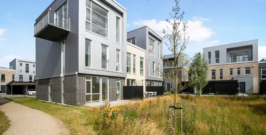 Sofiendalen er det perfekte sted at bo for alle, der drømmer om at bo i pagt med naturen, uden at flytte væk fra byen. Her får du en nyopført bolig med en beliggenhed, der leverer på både natur og nærhed til byens centrum. De nyopførte boliger ligger i bydelen Sofiendal Enge, i den sydvestlige del af Aalborg. Bydelen er lille, fredelig og hyggelig, men samtidig er her alt, hvad man har brug for til daglig og i fritiden. Sofiendal Enge er en bydel, med fokus på grønne områder, som både skaber luft mellem boligerne og giver mulighed for udendørs nabofællesskaber. Samtidig er der en god adgang til natur og flot udsigt over området. Området ligger tæt på sportsfaciliteter med nem adgang til folkeskole og daginstitution, kun få kilometer fra midtbyens pulserende byliv, altså en bydel, der appellerer til mange forskellige mennesker og familier. Alle boliger har private udendørs opholdsarealer i form af egen terrasse, tagterrasse eller altan, og alle kan desuden benytte de indbydende, grønne fællesarealer. Alle boliger er funktionelt indrettet for at udnytte hver kvadratmeter, og der er lagt stor vægt på, at boligerne kræver et absolut minimum vedligeholdelse.