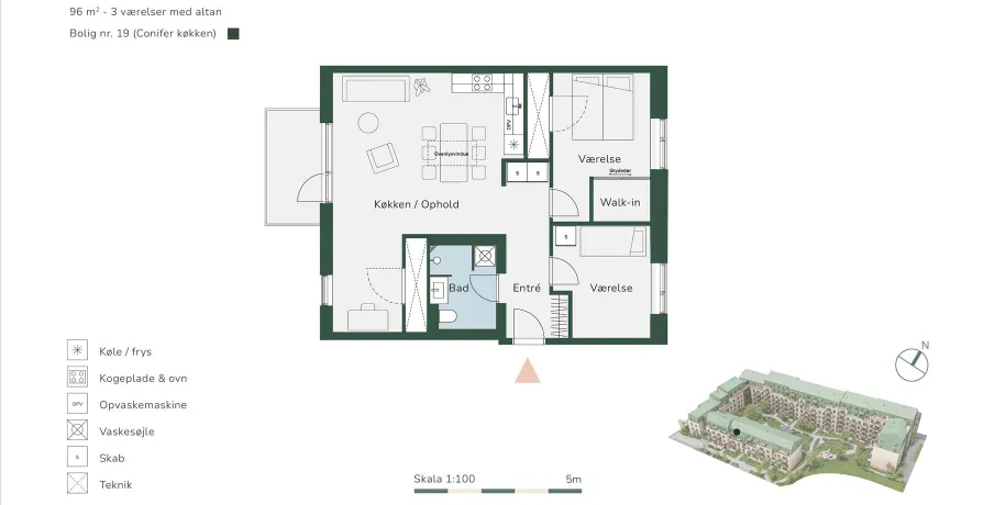 3 værelses lejlighed på 96 m2