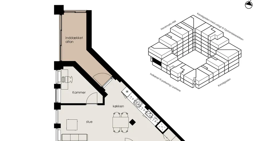 Lejligheden er moderne og lyst indrettet med et flot lysindfald fra de store vinduespartier. Alle lejligheder har direkte adgang til egen terrasse eller altan, så livet også kan nydes udenfor blot ved at åbne terrassedøren og man er ligeledes sikret en flot udsigt over Albertslund.Ejendommen er udviklet med fokus på at skabe et unikt seniorbofællesskab. Derfor har du som beboer adgang til fællesfaciliteter såsom tagterrasse med en motionssti og siddemiljøer, et stille og roligt gårdrum med orangeri, et fælleskøkken og spisefaciliteter med tilhørende terrasse og ikke mindst et hobbyrum, hvor der eksempelvis vil være værksted.Der er elevator i alle opgange, så man nemt kommer til sin bolig direkte fra gaden eller fra bilparkeringen.Til hver lejlighed følger et depotrum, hvor du kan opbevare de ting, som du ikke bruger så ofte. Der er derudover mulighed for at leje en p-plads i parterre.
