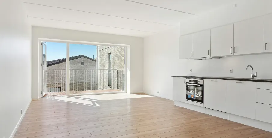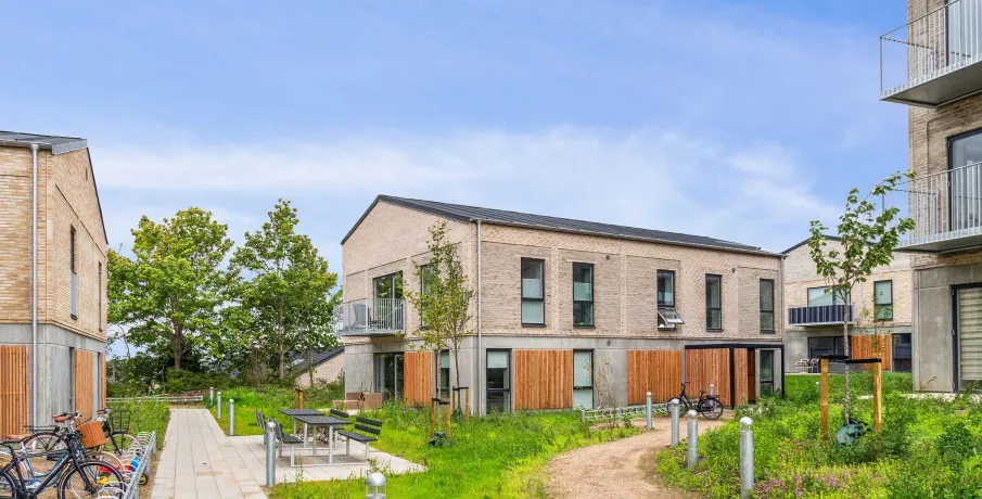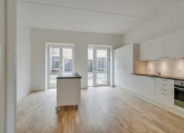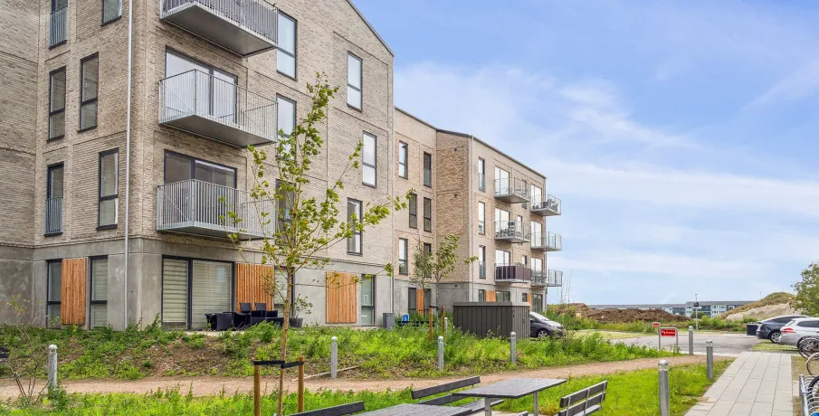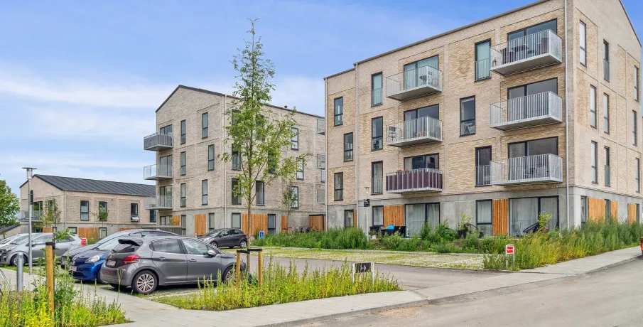 .. Lejlighederne kommer med forskellige planløsninger. Nogle lejligheder har en lille entré, og i andre lejligheder træder man direkte ind i køkken-alrummet. Du får et godt og funktionelt indrettet badeværelse med separat bruseniche og vaskesøjle med kombineret vaskemaskine og tørretumbler. Alt afhængig af lejlighedens størrelse er der 1 til 3 separate værelser udover køkken-alrummet. Der er depotrum tilgængeligt i næsten alle lejemål bortset fra otte boliger, hvor depotrummet er udenfor lejemålet... Alle lejlighederne i stueetagen har egen terrasse omkranset af lille hæk. Ligeledes har alle lejligheder fra 1. sal og op en altan... Hårde hvidevarer.. Der er alt i hårde hvidevarer samt en kombineret vaskemaskine og tørretumbler... Husdyr.. Lejere kan ansøge om tilladelse til at holde indekat og hund på adressen. Udekatte er ikke tilladt... Se vores samlede husdyrsregler.. her.. ... Parkering.. Der er i alt 129 p-pladser, hvoraf 41 er i parkeringskælder mens de resterende 88 ligger i terræn. Af de 129 p-pladser er flere handicappladser og pladser forbeholdt el- og hybridbiler... Elevator.. Der er elevator i alle bygninger, som er højere end 2 etager. . Det vil sige, at nummer 6, 8 og 11 ikke har en elevator, hvorimod resten har... Fælles arealer.. Bygningerne danner til sammen rammen om et skønt område med gode hyggekroge, plads til at boltre sig samt mulighed for flere aktiviteter og boldspil. Imellem boligerne er der fine stier og opholdsrum med træer, høje græsser samt andet vild og blomsterfuld beplantning for at fremme biodiversiteten. Der er ligeledes et bånd af marksten langs den primære sti igennem projektets område, som skaber en æstetisk flot LAR-løsning til opsamling af regnvand. En fin legeplads bliver samlingspunktet for områdets børn, hvor de kan lege og hygge sig sammen. Der er cykelparkering i alle de tre gårdmiljøer... Læs mere om boligen.. De viste billeder kan være fra et andet men tilsvarende lejemål i samme ejendom. Mindre afvigelser kan derfor forekomme...