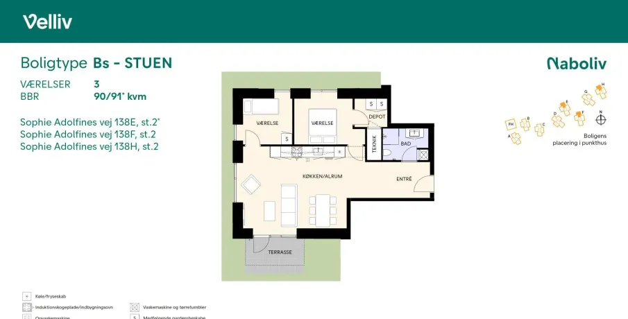 Det første Naboliv-projekt ligger smukt placeret i Birkerød, omgivet af skov, søer og et levende lokalmiljø. Her danner otte moderne punkthuse rammen om 110 boliger, der tilsammen udgør et harmonisk og imødekommende nabolag. Et multifunktionelt fælleshus, drivhus, legeplads og flere andre fællesfaciliteter skaber de bedste forudsætninger for, at fællesskabet kan spire og gro.De lyse boliger er indrettet i en elegant nordisk stil med kvalitetskøkkener fra Invita, praktiske laminatgulve samt indbyggede skabe og depotrum. Massive døre og store vinduespartier lader lyset strømme frit gennem rummene og skaber en behagelig, åben atmosfære. Her er alt gjort klar til indflytning – du skal blot sætte dine møbler på plads og føle dig hjemme fra dag ét.Naboliv handler om fællesskab – både det planlagte og det spontane. Her mødes man til arrangementer, aktiviteter og små daglige øjeblikke, men der er også plads til ro og privatliv. Filosofien om det uforpligtende fællesskab betyder, at du altid kan vælge, hvordan du vil være en del af livet i Naboliv.Birkerød er en livlig handelsby i Nordsjælland – kun 30 minutter fra København – kendt for sit rige kulturliv, hyggelige torvedage, musikarrangementer og biograf. Her kombineres nærheden til naturen med byens puls og fællesskabets varme. Med en beliggenhed i cykelafstand til både børnehave, Birkerød Skole, Birkerød Station, idrætscenteret og Furesø Golfklub, får du alt, hvad du behøver, lige i nærheden.