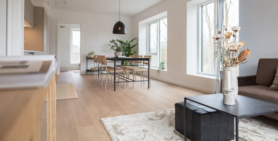 Det første Naboliv-projekt ligger smukt placeret i Birkerød, omgivet af skov, søer og et levende lokalmiljø. Her danner otte moderne punkthuse rammen om 110 boliger, der tilsammen udgør et harmonisk og imødekommende nabolag. Et multifunktionelt fælleshus, drivhus, legeplads og flere andre fællesfaciliteter skaber de bedste forudsætninger for, at fællesskabet kan spire og gro.De lyse boliger er indrettet i en elegant nordisk stil med kvalitetskøkkener fra Invita, praktiske laminatgulve samt indbyggede skabe og depotrum. Massive døre og store vinduespartier lader lyset strømme frit gennem rummene og skaber en behagelig, åben atmosfære. Her er alt gjort klar til indflytning – du skal blot sætte dine møbler på plads og føle dig hjemme fra dag ét.Naboliv handler om fællesskab – både det planlagte og det spontane. Her mødes man til arrangementer, aktiviteter og små daglige øjeblikke, men der er også plads til ro og privatliv. Filosofien om det uforpligtende fællesskab betyder, at du altid kan vælge, hvordan du vil være en del af livet i Naboliv.Birkerød er en livlig handelsby i Nordsjælland – kun 30 minutter fra København – kendt for sit rige kulturliv, hyggelige torvedage, musikarrangementer og biograf. Her kombineres nærheden til naturen med byens puls og fællesskabets varme. Med en beliggenhed i cykelafstand til både børnehave, Birkerød Skole, Birkerød Station, idrætscenteret og Furesø Golfklub, får du alt, hvad du behøver, lige i nærheden.