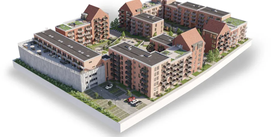Lejeboligerne spænder fra 61–121 m², fordelt på 2-4 værelser og er moderne indrettet med fleksible planløsninger, åbne køkkenalrum og integrerede depotrum – typisk adskilt fra soveværelse — med fokus på funktionalitet, dagslys og hjemlig hygge.Høj kvalitet kendetegner boligerne: egetræslameller med gulvvarme i alle rum, køkkener fra HTH med Corian-bordplader, samt medhørende opvaskemaskine, vaskemaskine og tørretumbler.Alle boliger har enten privat altan eller adgang til fælles tagterrasse og grønne gårdrum. De store vinduespartier sikrer godt dagslys i alle opholdsrum og værelser. Mange lejligheder har facade mod både gård og gade, så lyset fanges optimalt dagen igennem. OBS: Billederne på lejemålet er kun visualiseringer og/eller billeder fra en prøvebolig og er derfor IKKE af den specifikke bolig!
