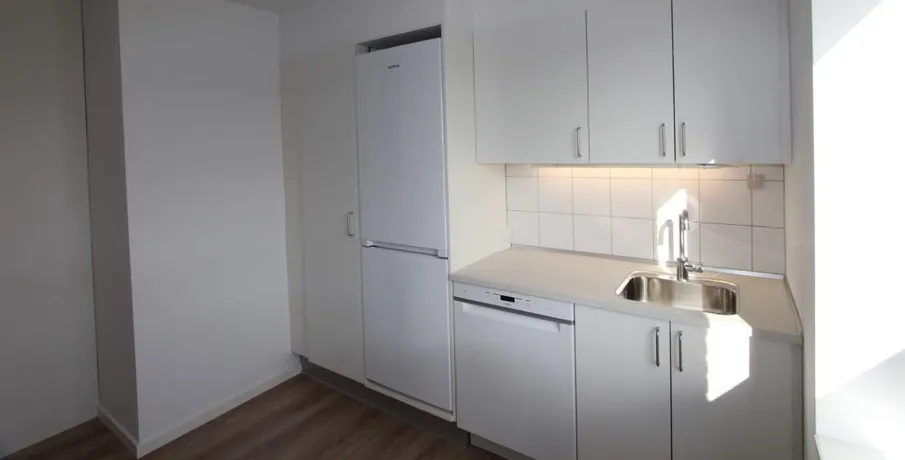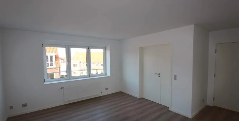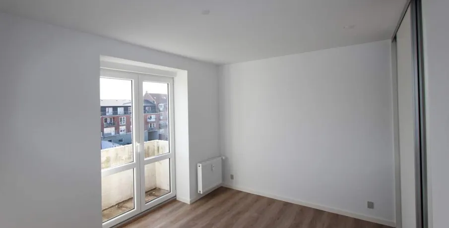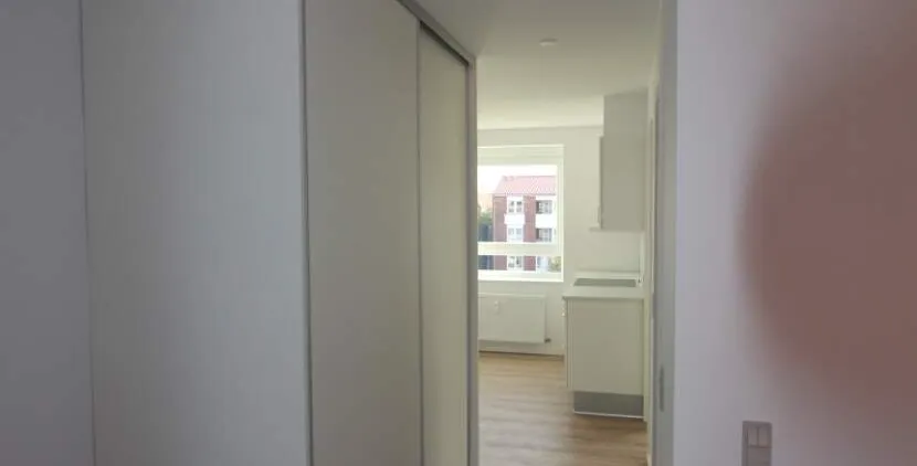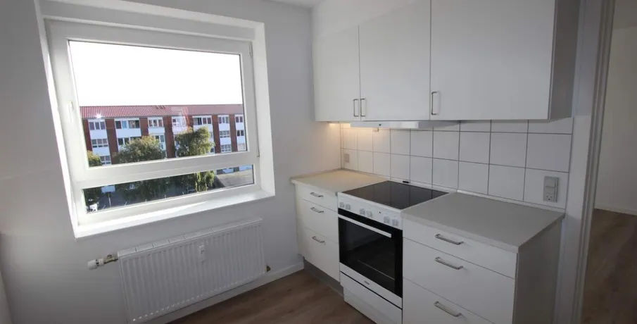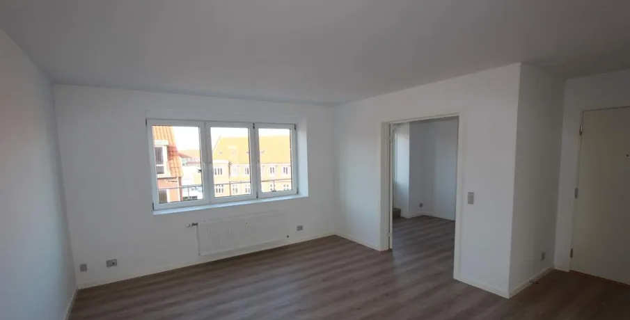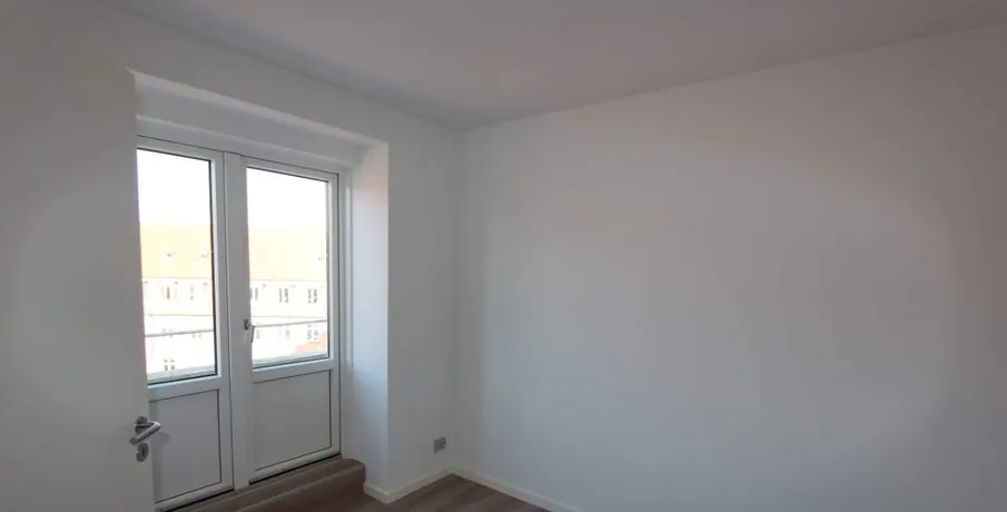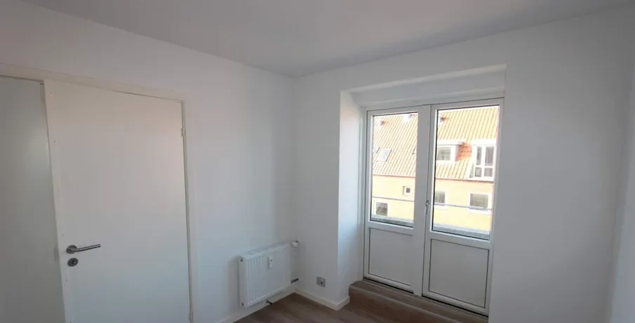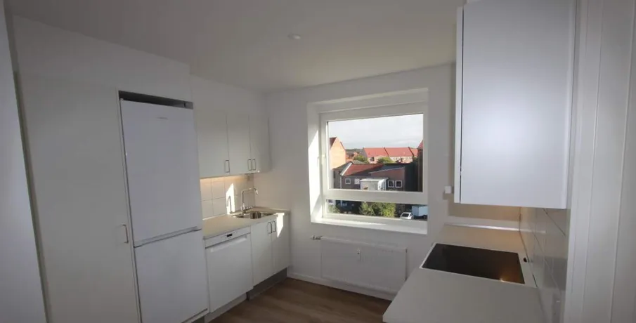 . Lækker renoveret 3 værelses med altan og parkering. Super flot, åben og lys, totalrenoveret lejlighed i rolig ejendom med slidstærke laminat "askelook" gulve i hele lejligheden. 2 altaner. Entre med skydedørsgarderobe. Dejligt soveværelse med store skydedørsskabe, med hylder og bøjlestænger. Lyst og flot åbent køkken med hvidt køkkeninventar, stort køle/frys, glaskeramisk komfur, opvaskemaskine. Badeværelse med hvide fliser, gulvvarme, hvid vask og skabselementer, rummelig bruseniche, vaskemaskine og tørretumbler. Lejligheden har dørtelefon, låst opgang og et tilhørende opbevaringsrum i kælderen. Mulighed for at leje af garage i baggård. Husdyr ikke tilladt.. Ejendommen, som er opført i 1956 og løbende moderniseret, er beliggende 1,5 km fra centrum. Ejendommen består af 24 lejligheder. I kælderen er der fælles vaskeri, tørrerum og cykelrum. Til hver lejlighed er der ligeledes et pulterum. Tilhørende ejendommen er der garageanlæg og gode parkeringsforhold. Desuden en velholdt solgård med græsareal..