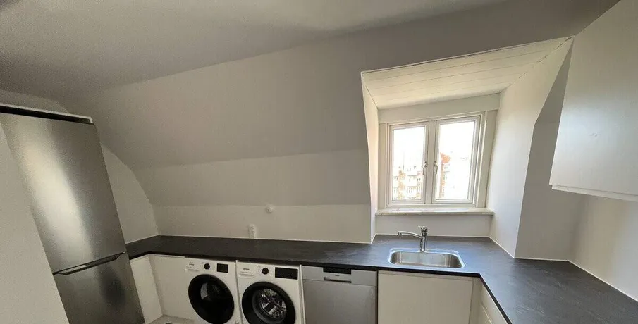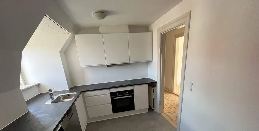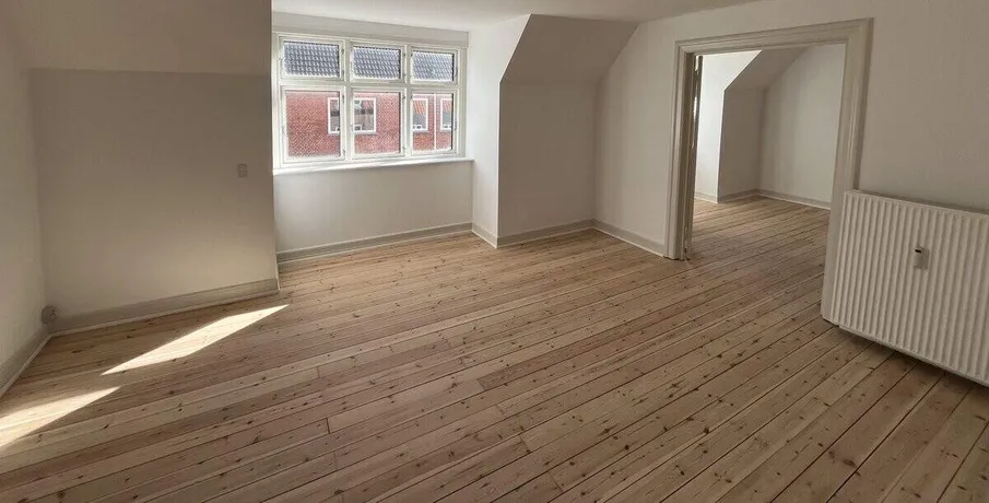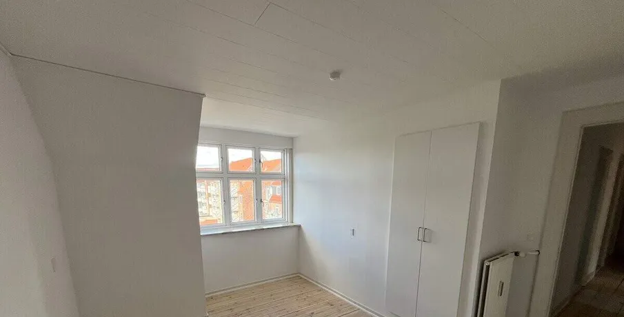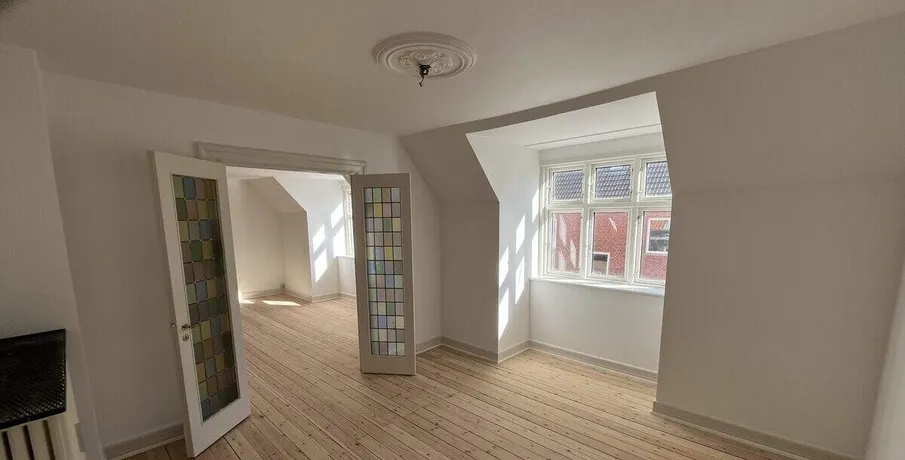 Stor charmerende lejlighed, nyrenoveret og delevenlig Stort nyt køkken med alt i hårde hvidevare Pænt brusebadeværelse Stor dobbelt stue, det ene kan bruges som værelse eller spisestue Soveværelse med skabe Velegnet til 2 personer der vil dele lejlighed Flotte trægulve, nymalet, dørtelefon Der er naturligvis både opvaskemaskine og vaskemaskine i lejligheden Det er muligt at tilkøbe en p-plads hvis der er noget ledigt
