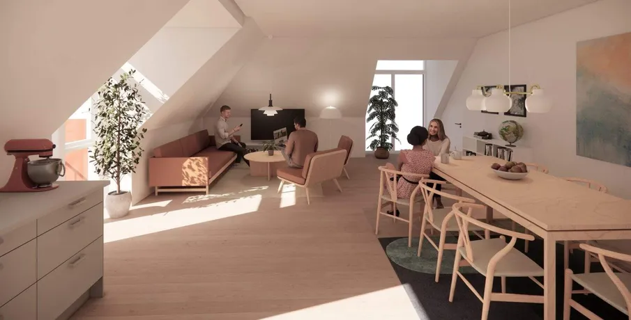 Ring for en fremvisning.. Eksklusiv nyopført penthouselejlighed tæt på havnen. Drømmer du om at bo i en moderne og lys penthouselejlighed med en fantastisk beliggenhed? Så har du nu mulighed for at sikre dig en af de kun to nyopførte penthouselejligheder på Fiskebrogade – et attraktivt område nær både havn og bymidte.. Perfekt beliggenhed. Lejligheden ligger i et roligt og populært kvarter tæt ved Esbjerg Havn og kun få kilometer fra centrum. Her er du omgivet af hyggelige caféer, spisesteder og gode indkøbsmuligheder – alt inden for gåafstand. Derudover finder du både svømmestadion, padelcenter, fitness og offentlig transport tæt på.. Er du til naturoplevelser, kan du nyde strandpromenaden ved Hjerting – kun 6 km væk – med smuk udsigt over Ho Bugt og mulighed for både badning og aktiviteter.. Moderne indretning og kvalitetsmaterialer. Lejligheden er opført i kvalitetsmaterialer og lever op til de nyeste energikrav. Boligen indeholder:. Åben stue og køkken i et lyst og moderne design. HTH-køkken med køle/fryseskab, ovn og kogeplader. Mulighed for installation af egen opvaskemaskine. Direkte udgang til altan eller terrasse. Stort soveværelse samt ekstra værelse/kontor. Lækkert badeværelse med bruseniche og plads til vaskesøjle. Øvrige fordele:. Elevator i ejendommen. Privat parkeringsplads med mulighed for opladning af elbil. Husdyr ikke tilladt. Drømmer du om at bo her? Så kan allerede nu sikre dig en lejlighed ved at kontakte os. Billeder er vejledende Altan Energimærket Husdyr ikke tilladt Mulighed for parkering