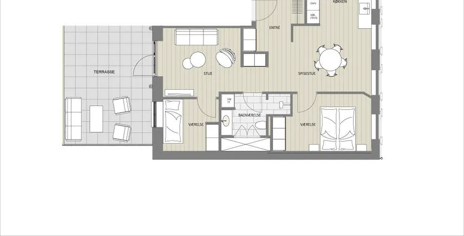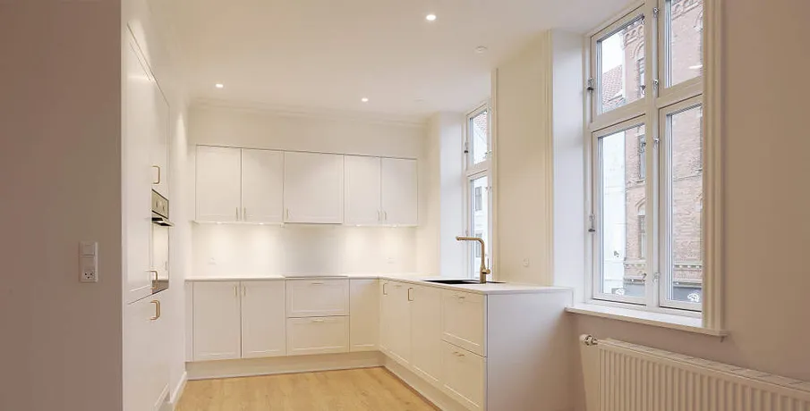 Nyrenoveret 3-værelses lejlighed i - indflytningsklar 1. februar 2025. Drømmer du om at bo i en moderne, nyrenoveret lejlighed i hjertet af Esbjerg? Så er denne 3-værelses bolig et oplagt valg for dig! Med en central beliggenhed i får du nærhed til byen samt egen stor terrasse, hvor du kan nyde de rolige omgivelser i baggården.. Lejligheden byder på en funktionel og rummelig indretning. Fra entréen træder du ind i en lille forgang, som fører dig videre til det åbne køkkenalrum. Her skabes en naturlig forbindelse, som indbyder til både hverdagshygge og gæstebesøg. I lejligheden er der ydermere en hyggelig stue med stor ud til terrassen, ét soveværelse samt et mindre værelse/kontor. Der er generelt gode opbevaringsmuligheder i boligen, så du nemt kan holde orden og udnytte pladsen optimalt. I lejlighedens badeværelse er der vaskemaskine og tørretumbler.. Der er parkeringsmuligheder bag ejendommen.. Bruttoareal: 83 m2. Lejlighedsareal: 74,9 m2