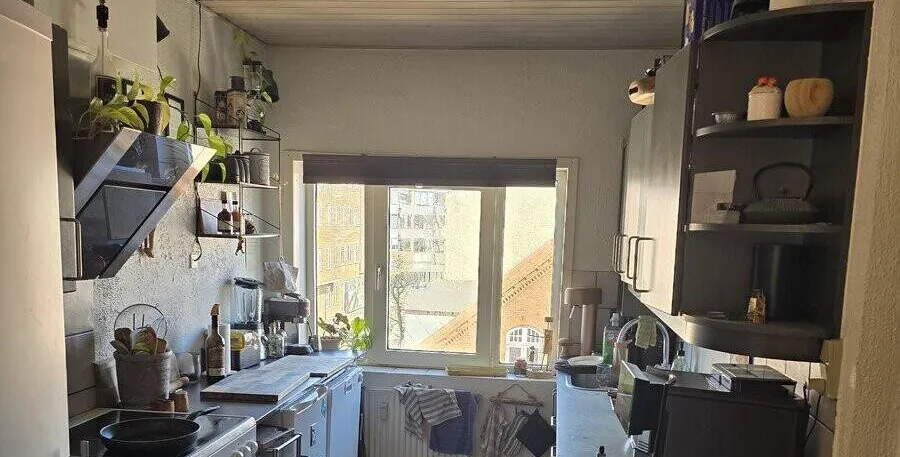 Super centralt beliggende lejlighed 2 meget hyggelige stuer, masser af lys Godt køkken med kølefrys og plads til egen opvasker. Stort flot badeværelse med brus Stort soveværelse + værelse Lejligheden er meget velegnet til både en enkelt person eller par Plads til egen opvaskemaskine og vaskemaskine For mere info. kontakt ejer
