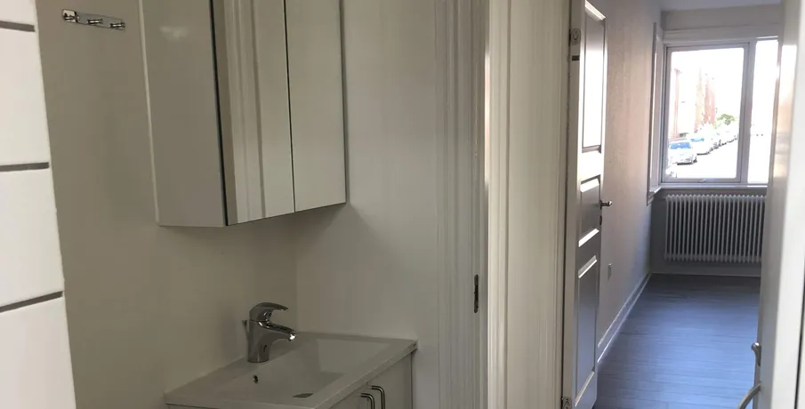 Søger du en bolig i historiske Fredericia, så tag et ekstra kig på Nørrebrogade! Her får du en lejlighed med central beliggenhed, med kort gåafstand til indkøb, shopping og spisesteder. Desuden ligger stranden, Den Gamle Bydel og Voldene ligeledes inden for gåafstand og er et ganske hyggeligt område for en gåtur i den friske luft. Fredericia giver, med sin centrale beliggenhed, gode muligheder for at komme længere omkring, enten via tog med forbindelser til hele Danmark, bus eller motorvejsnettet. Lejlighederne på Nørrebrogade 30, 32A og 32B er opført i 1939. Boligerne bliver løbende renoveret og du bliver derfor garanteret en bolig som fremstår moderne og indflytningsklar. Ejendommene indeholder 2- og 3-værelses lejligheder og er indrettet med: En fin entré med plads til garderobe. Et badeværelse, som er opført i lyse materialer, med skabsplads og fin bruseniche. Ét / to soveværelser. En rummelige stue, som har et skønt lysindfald fra det store vinduesparti. Et lyst køkken, som indeholder alt i hårde hvidevare: Kogeplade, ovn, køle-/fryseskab og emhætte. Alle lejlighederne har en skøn altan med plads til både havebord og gasgrill. Det er muligt at leje parkering i gården. Dét som specielt bør fremhæves ved disse boliger er, at der har været fokus på at få trukket så meget dagslys ind i rummene som muligt, hvorfor man også har benyttet lyse og gode materialer. Den gode planløsning har været med til at gøre boligerne utrolig brugervenlige og rummelige. Lejlighederne har et depotrum i kælderen til opbevaring. I kælderen er der et lyst og lækkert moderne vaskeri, med plads til tørrestativ. Betaling foregår via en app. Lyder disse velindrettede lejligheder som noget for dig? Så bestil en fremvisning og bliv kontaktet snarest muligt for nærmere aftale. OBS: Billederne er af en prøvebolig og dermed vejledende.