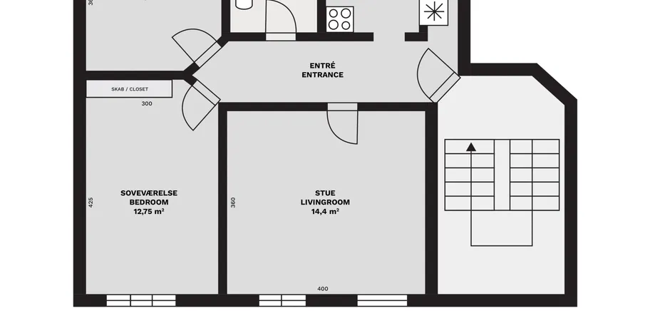 3 værelses lejlighed på 77 m2