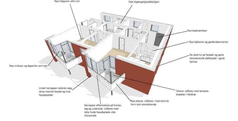 Afdelingen har gennemgået en stor renovering i årene 2023 - 2025. Alle boliger har fået nyt køkken og bad, nye træ/alu vinduer og altan, nye gulve og alle væg- og loftsflader er renoveret. Der er nyt tag og nye facader samt solceller på tagene. Der er elevator i opgangene Finnsvej 50, 52 og 58, 60 og 62. Der er opsat ladestander til el-biler i afdelingen. Der er skønne, store grønne områder med masser af luft og tumleplads i afdelingen. Afdelingen er centralt beliggende tæt ved dagligvarebutikker, skole og institutioner. Beboerne leverer og installerer selv køle-/fryseskab. Du kan søge om boligstøtte samt indskudslån hos kommunen til denne type bolig, og har du øvrige spørgsmål til lejemålet så kontakt gerne Frederikshavn Boligforening på telefon eller mail.