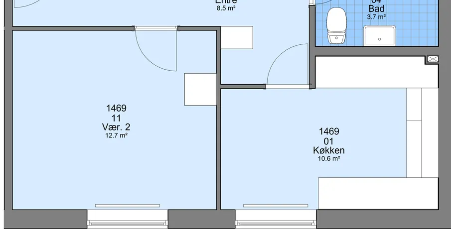 3 værelses lejlighed på 87 m2