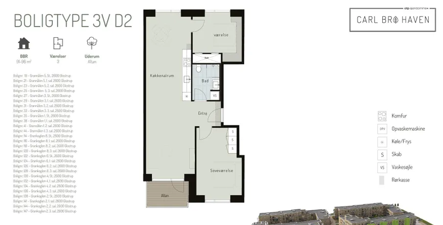 Om lejligheden:Dejligt køkken alrum med HTH elementer og udgang til altan eller terrasse, derudover får du én, to, tre eller fire gode værelser alt efter plantegninger samt et flot flisebadeværelse med vaskemaskine og tørretumbler. Området:Roligt børnevenligt område kun 11 km fra København. Ejendommen ligger ud til det hyggelige Hvissinge Torv, Hvissinge Hallen og med få minutters gang til skole og børnehave.Tæt på ejendommen finder du også Vestskoven og den populære supercykelsti, der fører direkte til København.Gode ind¬købs¬mu¬lig¬he¬der i Coop 365 lige ved ejendommen og gode par¬ke¬rings¬mu¬lig¬he¬der både i terræn og p-kælder. Adgang til p-plads i kælderen koster p.t. kr. 300 om md.Ejendommen:Nybygget ejendom fra 2024 med 198 nye 2 – 5 værelses lejeboliger på 53 – 141 m2 med altan eller terrasse.Grønne fællesområder, fælleshus, orangeri, legezoner og brugsret til eget depotrum i kælderen. P-pladser både i terræn og p-kælder.BEMÆRK: Billederne er fra vores prøvebolig.