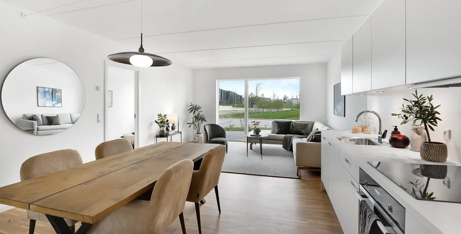 3-værelses lejlighed i Birken i Hedehusene. Velkommen til Birken i Hedehusene, moderne lejligheder med plads til både hverdag og samvær.. De 3-værelses lejligheder har åbent køkken med hårde hvidevarer, vaskemaskine og flere med tørretumbler. Planløsningen giver god plads til både ophold og soveværelser og passer perfekt til par og familier.. Ejendommen Ejendommen er moderne og veldrevet med elevator, cykelparkering og grønne fællesområder. Her får du en rolig og behagelig hverdag i gode omgivelser.. Området Birken ligger tæt på Hedehusene Station, hvor lyntoget kører til København på cirka 19 minutter. Der er gode indkøbsmuligheder, parker og stisystemer, som gør det nemt at komme rundt.. Et lyst og funktionelt hjem i et fredeligt kvarter tæt på alt.. Billederne i denne annonce kan være fra lignende enheder og er kun til illustration. De repræsenterer stilen og kvaliteten af de tilgængelige enheder og kan variere i opbygning og detaljer.. Møblerne vist på billederne medfølger ikke. De skal give et indtryk af, hvordan rummet kan indrettes, men er ikke inkluderet i lejemålet..