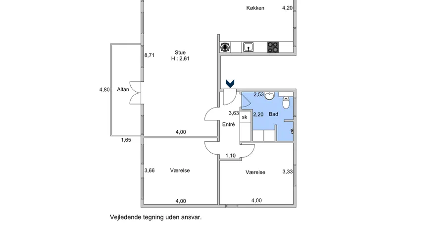 3 værelses lejlighed på 116 m2
