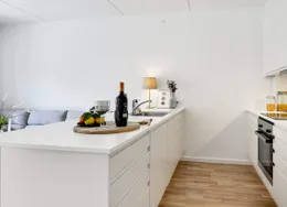 Velkommen til Den Grønne Fatning, der er skabt til dig, der ønsker både funktionalitet og lækkert design. Lejlighederne rummer 2–4 værelser fordelt på 78–121 m² og er indrettet med store vinduespartier, som giver et lyst og åbent hjemmemiljø. Parketgulvene medvirker til at gøre boligerne lyse. Det elegante HTH-køkken ligger i åben forbindelse med opholdsrummet og skaber et naturligt samlingspunkt for både hverdagsliv og gæster. Hver bolig har sit eget uderum - enten en privat altan eller direkte adgang til det grønne gårdrum, som fungerer som en fredelig forlængelse af boligen. Med adresse i hjertet af Herlev får du en placering, hvor alt er tæt på. Indkøb, caféer, træningsmuligheder og offentlig transport ligger inden for en kort afstand, hvilket giver en fleksibel og let hverdag. Her er der kort til det, du bruger mest – og lige så kort til små grønne åndehuller, hvor du kan få et pusterum fra byen. Det fælles gårdrum, placeret i første sals højde, giver området en helt særlig atmosfære. Her kan du nyde rolige stunder eller møde dine naboer i uformelle omgivelser. De gennemgående gangbroer og trapper skaber et levende og socialt miljø, hvor fællesskab kan blomstre, uden at man går på kompromis med privatlivet. Der tages forbehold for fejl og evt. lejereguleringer. OBS: Der er 9 mdr. bindingsperiode og 3 mdr. opsigelse. Lejemålet er tidsubegrænset. Billeder er fra prøvebolig.