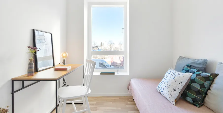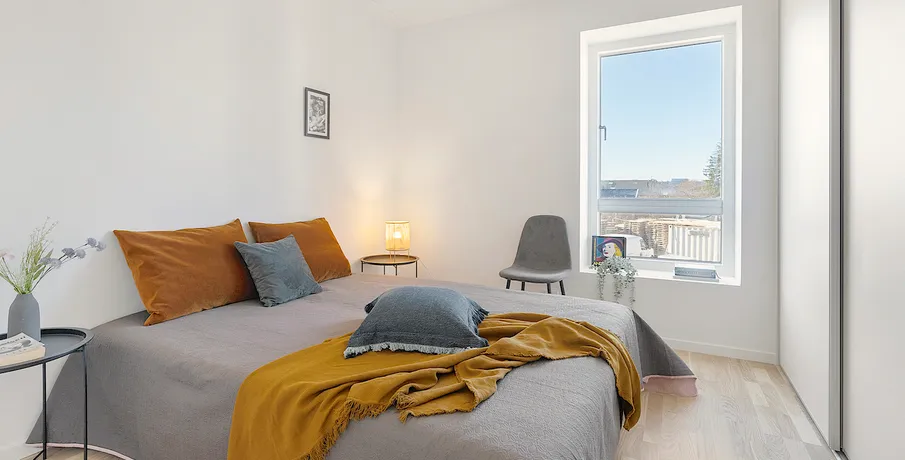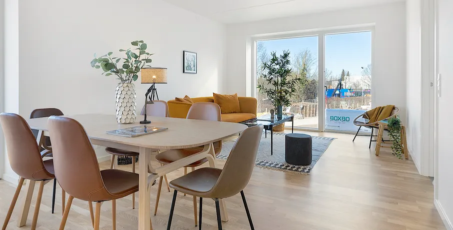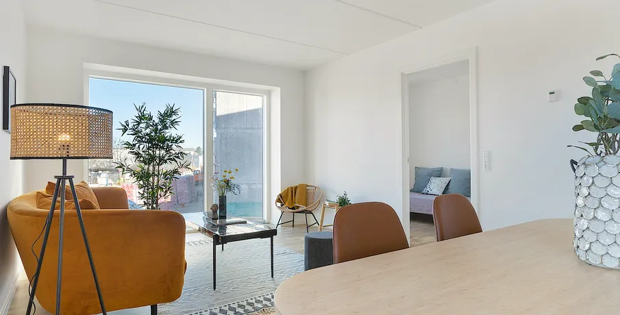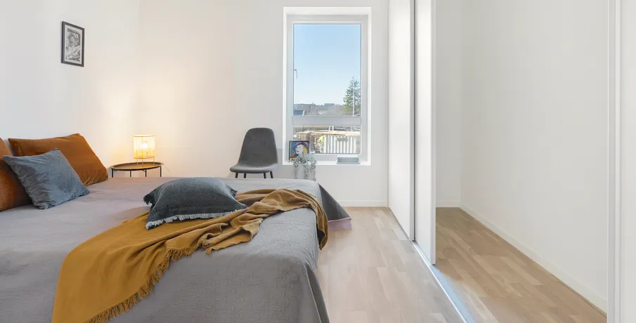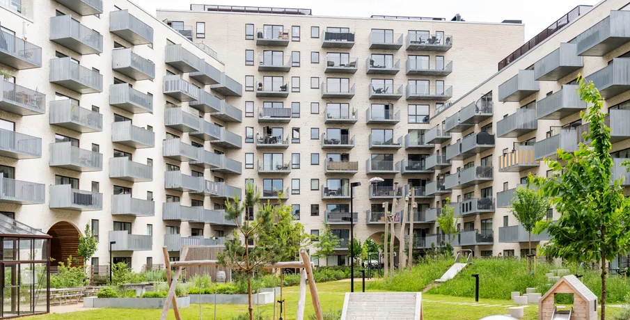 Lyskilden – moderne lejeboliger i Herlev Lyskilden består af 231 lejeboliger i Herlev, skabt med fokus på både komfort, bæredygtighed og fællesskab. Ejendommen opføres med DGNB Guld-certificering, hvilket betyder, at der er tænkt på alt fra materialevalg til energiforbrug og indeklima – til gavn for både miljøet og beboernes hverdag. Lejlighederne er udført i høj kvalitet med egeparketgulve og gulvvarme i alle rum. Køkkenerne er lyse, grebsfri SVANE-køkkener med hårde hvidevarer fra Electrolux, og badeværelserne fremstår moderne med store, lyse klinker fra Marazzi. Alle boliger har eget badeværelse med vaskesøjle samt mindst én altan eller terrasse. Mange boliger har desuden adgang til hyggelige fælles altangange, der skaber rammerne for uformelle møder med naboerne. De fem bygninger ligger omkring et grønt og indbydende gårdrum med private opholdsarealer i stueplan og rummelige altaner vendt mod gården. Her er der plads til både leg og afslapning med legeplads til de mindste, træningsfaciliteter, fælles væksthuse og små, beplantede opholdszoner, som inviterer til samvær og godt naboskab. Der er desuden adgang til en fælles tagterrasse, hvor du fra de øverste etager kan nyde udsigten over byen og de omkringliggende haveforeninger. Herlev er i hastig udvikling og har en attraktiv placering i hovedstadsområdet. Området byder på gode skoler og daginstitutioner, og med kommende letbane, byfornyelse af centeret og udvidelsen af hospitalet bliver byen endnu mere attraktiv. Lyskilden ligger i den sydlige del af Herlev tæt på kolonihaver, indkøb, offentlig transport og en kommende letbanestation – og med nem adgang til København. Velkommen til et hjem med plads til både hverdag og fællesskab. Der tages forbehold for fejl og evt. lejereguleringer. OBS! Billeder er fra prøvebolig!