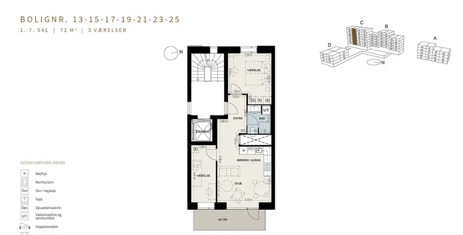 3 værelses lejlighed på 72 m2