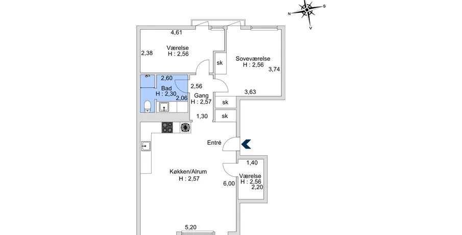 3 værelses lejlighed på 95 m2