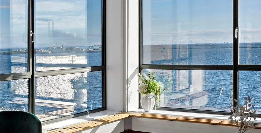 Her får du en bolig, hvor maritim ro, bynær beliggenhed og moderne komfort går hånd i hånd. Lejligheden tilbyder en sjældent flot panoramaudsigt over Øresund, som kan nydes fra både stue og opholdsrum – en udsigt, der gør hverdagen helt særlig.Med placeringen midt på Langelinie Allé er du i gåafstand til både Østerbro og Indre By. Her kombineres storbyens puls med vandets rolige atmosfære, og de store vinduespartier i boligen giver et naturligt lysindfald og en fornemmelse af at være tæt på naturen. Åbner du vinduerne, strømmer den friske havluft ind og understreger hjemmets rolige karakter.Boligens indretningLejlighedens hjerte er den rummelige stue med store vinduer og et imponerende kig over Øresund. Stuen fungerer som et fleksibelt opholdsrum med plads til både afslapning og socialt samvær. I åben forbindelse ligger det nyrenoverede HTH-køkken fra 2024 (Ikke det der fremgår på billederne), som skaber en praktisk og sammenhængende boligramme.Fra spiseafdelingen er der adgang til et ekstra opholdsrum/TV-stue, som kan anvendes efter behov – eksempelvis som loungeområde, kontor eller familiens fællesrum.Lejligheden rummer desuden et stort, roligt soveværelse med indbyggede skabe og god plads til opbevaring. Her får du et privat og afskærmet rum væk fra boligens øvrige opholdsarealer.Ejendom og faciliteterEjendommen er opført i 1997 og byder på et præsentabelt indgangsparti samt velholdt arkitektur. Som beboer får du adgang til en stor fælles tagterrasse med smuk udsigt over byen og Øresund – perfekt til afslapning på varme aftener. Gode parkeringsmuligheder og mulighed for leje af særskilt parkeringsplads i kælder, samt cykelkælder og skøn tagterrasse.