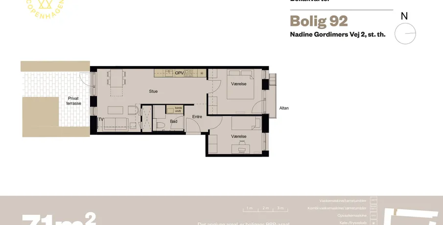 3 værelses lejlighed på 71 m2