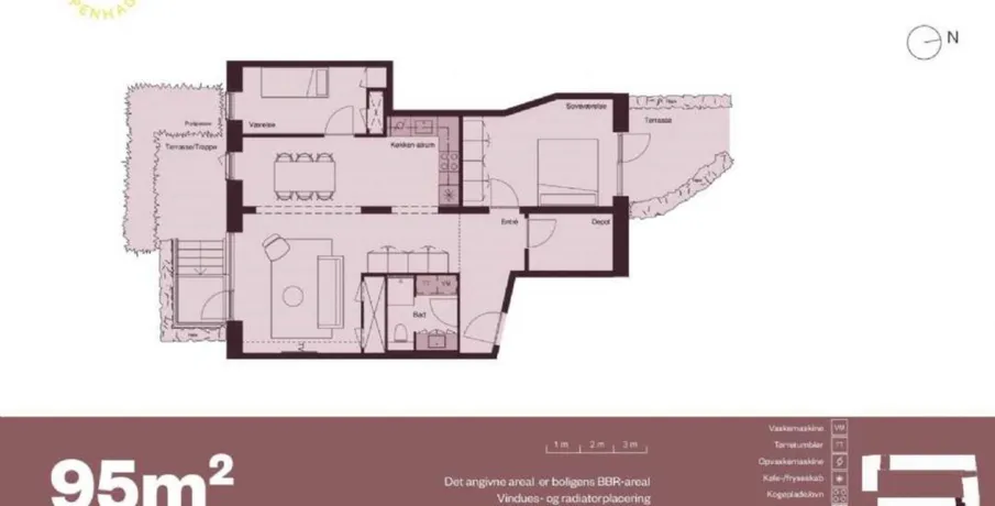 3 værelses lejlighed på 95 m2