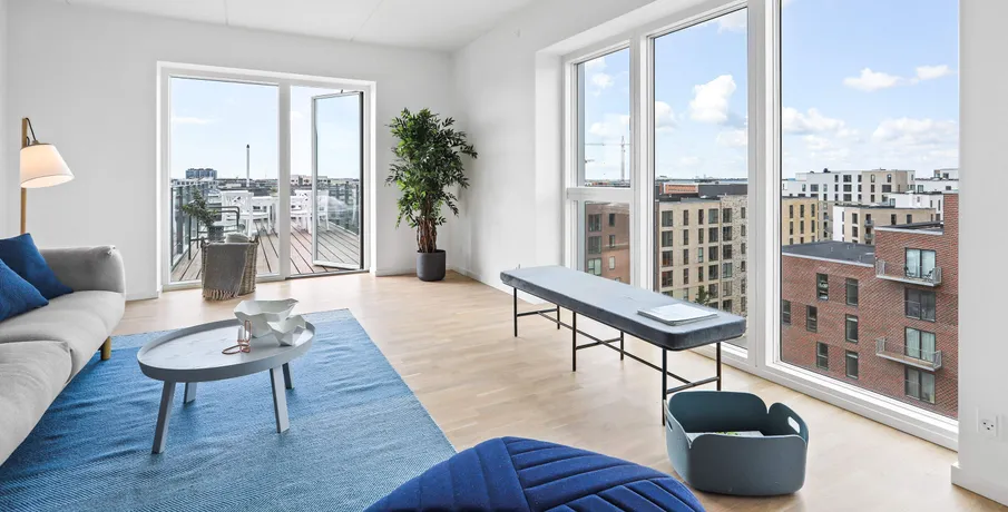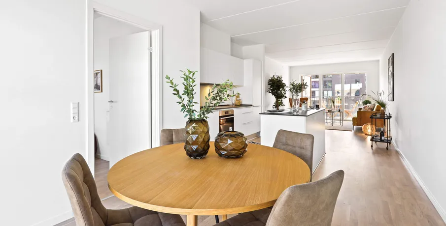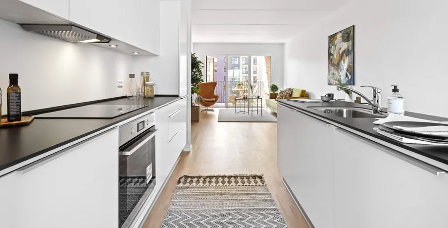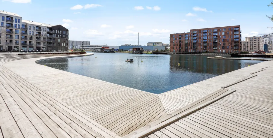OBS! Billederne er fra prøvebolig. Frederiks Brygge er Københavns nye, levende bykvarter med mulighed for at leje en lejlighed, både hvis du er alene eller hvis I er en lille familie. Her er smukke alléer med store platantræer, brostensbelagte forhaver med beplantede hegn og plantekasser, tagterrasser og grønne gårde mellem lejlighederne. Bydelens samlingspunkt er havnebassinet, der er udformet, så der opstår en sydvestvendt plads. Her er liv, leg og lange sommeraftner. Du kan købe italienske delikatesser i Stålhallen, og om få år kan du sidde på en af de hyggelige caféer kun en kort gåtur fra din lejlighed og nyde udsigten over vandet. Pladsen er indrettet med legeplads, boldbane, grillpladser, bordtennisborde og udsigtspunkter. Her er der også mulighed for at afholde sommerfest, loppemarked og koncerter – og på træbryggen langs kajen er der plads til din kajak eller jolle. Her er indkøb, skole og daginstitution med både vuggestue og børnehave, og hele kvarteret er forbundet via stisystemer, som gør det sikkert og trygt at færdes for store og små. Det er det ideelle kvarter at leje lejlighed i, hvis drømmeboligen skal ligge tæt på København, men stadig have lys og luft omkring sig. Der tages forbehold for fejl og evt. lejereguleringer.