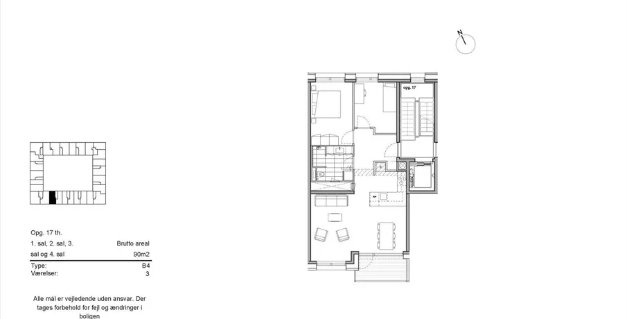 3 værelses lejlighed på 90 m2