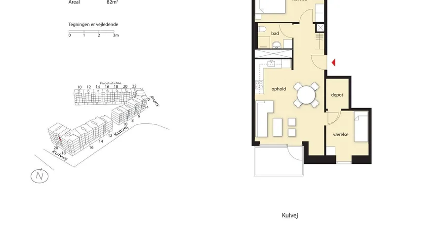 3 værelses lejlighed på 82 m2