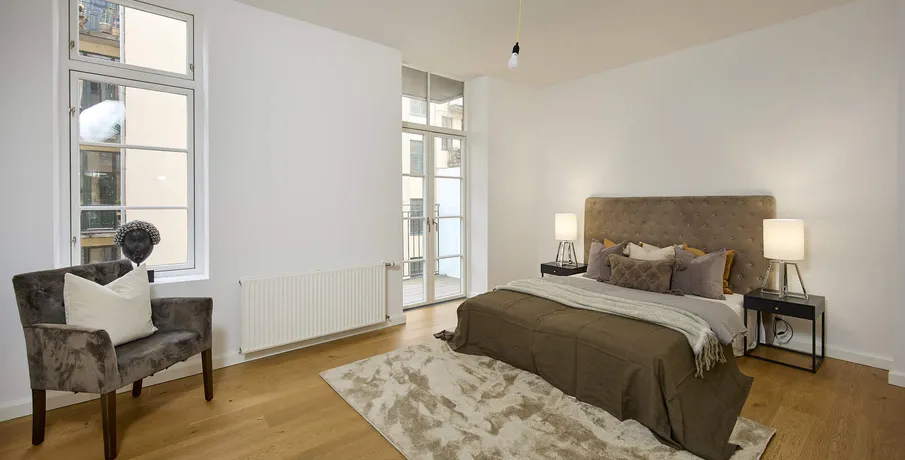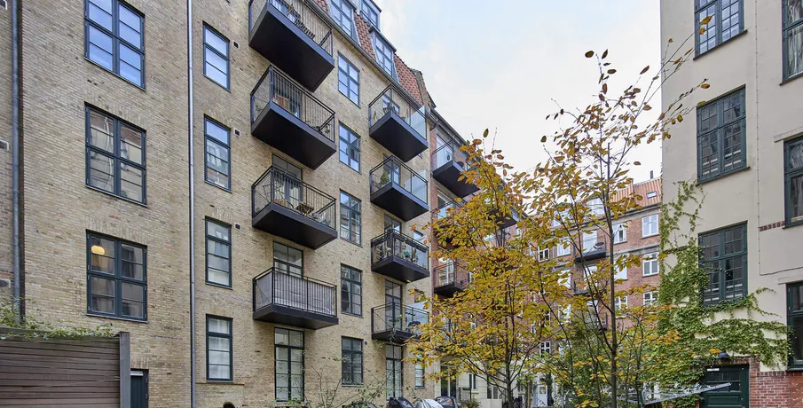 Om boligen. Ejendommen på Anker Heegaards Gade er en klassisk københavnerbygning opført i 1908, smukt placeret i det attraktive kvarter mellem Vesterbro og Indre By. Med sin historiske facade og renoverede opgange fremstår ejendommen både indbydende og tidløs.. Ejendommen rummer eksklusive liebhaverlejligheder, som er nænsomt renoveret med respekt for de oprindelige detaljer. Her finder man lejligheder med højt til loftet, lyse plankegulve i eg, store vinduespartier og moderne faciliteter som elevator og alt i hårde hvidevarer. Flere af lejlighederne har egen altan, og der er fokus på komfort og funktionalitet – blandt andet med rummelige badeværelser, vaskesøjle og åbne køkken-alrum med flytbar køkkenø og Quooker. Ejendommen er opvarmet med fjernvarme og har adgang til hurtige internetforbindelser. Der er ikke tilknyttet parkering, men beliggenheden gør det nemt at klare sig uden bil – med Hovedbanegården, metro og busser i gåafstand.. Ejendommen ligger i hjertet af København V – et attraktivt og levende område, hvor historisk charme møder moderne byliv. Området byder på et væld af caféer, restauranter og specialbutikker – ikke mindst i det nærliggende Kødbyen, som er kendt for sit pulserende natteliv og gastronomiske oplevelser. Tivoli, Rådhuspladsen og Strøget ligger også i gåafstand, hvilket gør beliggenheden ideel for dem, der ønsker at være tæt på både kultur, shopping og grønne områder som Ørstedsparken og Havnepromenaden. Lejligheden indeholder: Indbydende entré, der leder videre til et smukt og lyst køkken/alrum med alle hårde hvidevarer, stilren kogeø og en elegant buet karnap, som giver et fantastisk lysindfald. Køkken/alrummet er integreret med lejlighedens stue og skaber et åbent og indbydende opholdsrum. Lejligheden rummer to lyse og indretningsvenlige værelser med indbyggede skabe – det ene også med udgang til den skønne solrige altan med udsigt til gården. Badeværelset er flot renoveret med separat bruseniche og samt både vaskemaskine og tørretumbler.. Vi har endnu ikke billeder af denne specifikke lejlighed og anvender derfor henvisningsbilleder fra lignende lejemål i ejendommen.