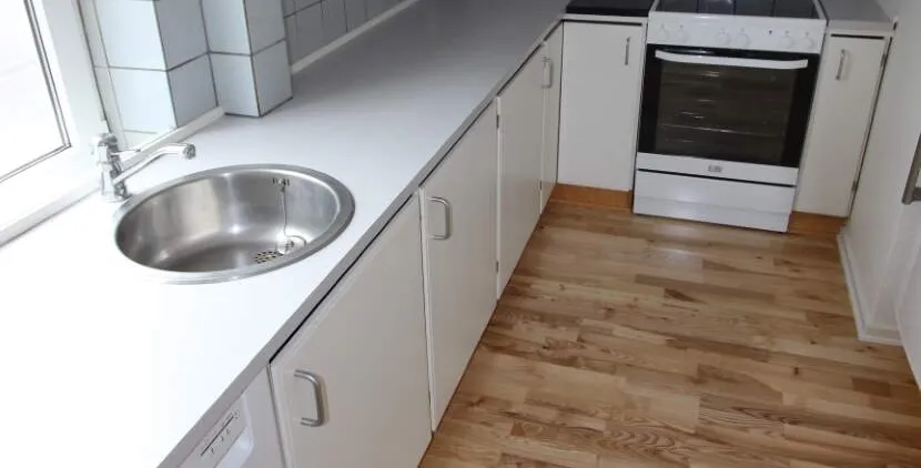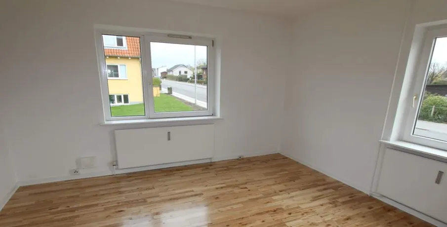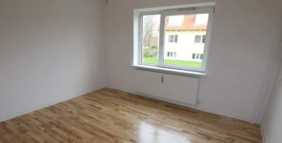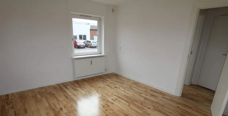 . Flot 3-værelses i centrum med parkering. Flot istandsat lejlighed med lakerede askeparketgulve i entre, stue og værelser. Dejligt lyst køkken med hvidt køkkeninventar. Soveværelse og værelse med faste garderobeskabe. Badeværelse med hvide fliser og gulvvarme. Husdyr ikke tilladt.. Ejendommene, som er opført i 1947 og løbende moderniseret er beliggende nær centrum. Ejendommene består af 2 bygninger med hver 4 lejligheder. I kælderen er der fælles vaskeri, tørrerum og cykelrum. Tilhørende ejendommene er der et stort velholdt haveanlæg..