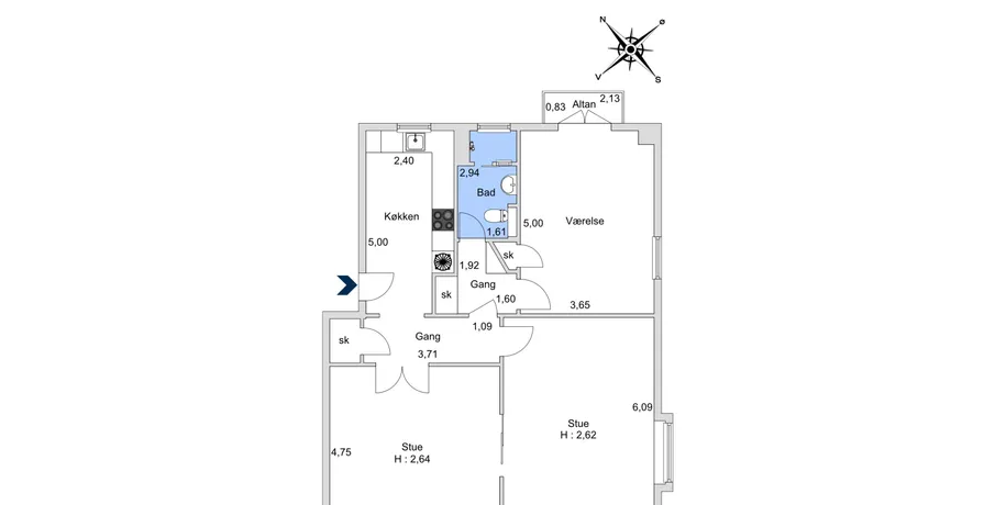 3 værelses lejlighed i Kongens Lyngby