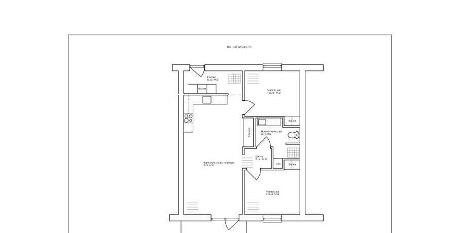 3 værelses lejlighed på 80 m2
