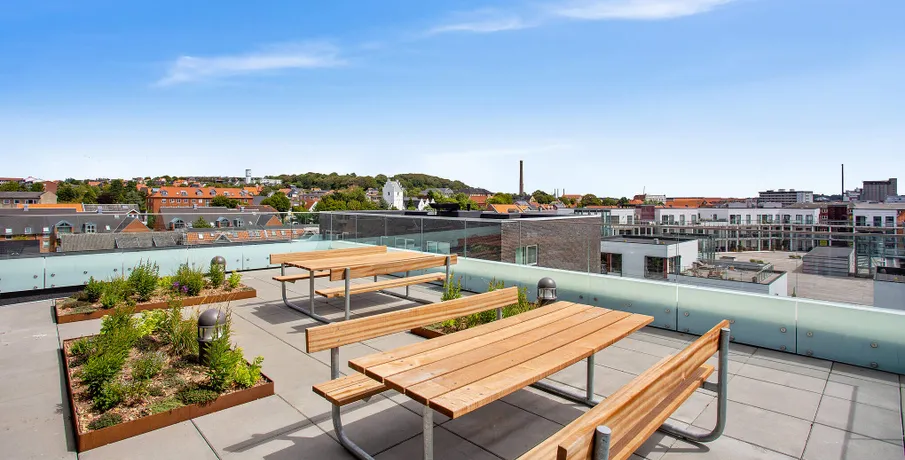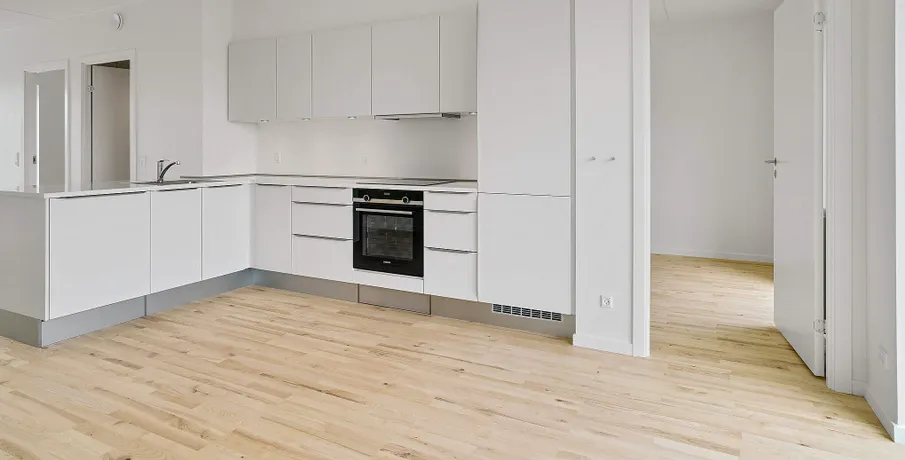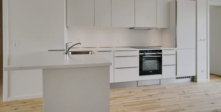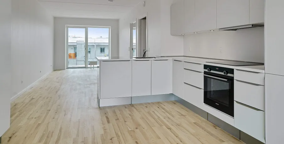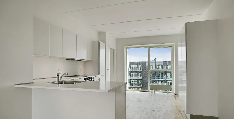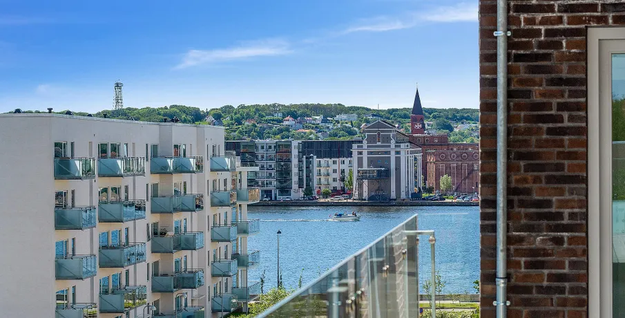 Bo lækkert tæt på fjorden og med sol på altanen De nye lejeboliger er præget af kvalitet i design og materialer og omtanke i alle detaljer Nørresundby Havnefront ligger tæt på det rekreative område Lindholm Strandpark, hvor du kan bade fra badebroen, spille beach-volley eller løbe en tur i naturen ad stien til Lindholm Fjordpark. Er det mere byens puls, der trækker, kan du cykle eller gå ad Kulturbroen – eller Kærlighedsbroen, som den også bliver kaldt – der på få minutter fører dig til Aalborg og bylivets tilbud. Boligerne er lyse, moderne og velindrettede. Lejlighederne har massive trægulve og hvide HTH køkkener med moderne stilfulde greb. Lejlighederne har desuden flere indbyggede skabe. Alle lejligheder er fuldt udstyrede med hårde hvidevarer i køkken og bad. Der er fokus på at minimere din elregning, både af hensyn til din pengepung og miljøet. F.eks. har både opvaskemaskinen og vaskemaskinen energimærket A+++, mens køle-/fryseskabet og tørretumbleren kommer lige efter med A++. Lejlighederne har alle enten en stor altan eller en terrasse. Lejlighederne varierer i størrelse, og en del af dem er også velegnede som delelejligheder. Her kan findes en velegnet bolig til unge og ældre, singler og par, børnefamilier og studiekammerater, der gerne vil dele hverdagen og huslejen. I Nørresundby Havnefront bor du i et røgfrit miljø: Det er ikke tilladt at ryge i lejligheder og opgange, eller på altaner og terrasser. Alle bygningerne har det grønne energimærke A2015, der er din sikkerhed for, at de lever op til de gældende energi- og tæthedskrav. OBS: Billederne kan være af en prøvebolig, og ikke den specifikke bolig.