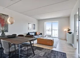 Bo lækkert tæt på fjorden og med sol på altanen De nye lejeboliger er præget af kvalitet i design og materialer og omtanke i alle detaljer Nørresundby Havnefront ligger tæt på det rekreative område Lindholm Strandpark, hvor du kan bade fra badebroen, spille beach-volley eller løbe en tur i naturen ad stien til Lindholm Fjordpark. Er det mere byens puls, der trækker, kan du cykle eller gå ad Kulturbroen – eller Kærlighedsbroen, som den også bliver kaldt – der på få minutter fører dig til Aalborg og bylivets tilbud. Boligerne er lyse, moderne og velindrettede. Lejlighederne har massive trægulve og hvide HTH køkkener med moderne stilfulde greb. Lejlighederne har desuden flere indbyggede skabe. Alle lejligheder er fuldt udstyrede med hårde hvidevarer i køkken og bad. Der er fokus på at minimere din elregning, både af hensyn til din pengepung og miljøet. F.eks. har både opvaskemaskinen og vaskemaskinen energimærket A+++, mens køle-/fryseskabet og tørretumbleren kommer lige efter med A++. Lejlighederne har alle enten en stor altan eller en terrasse. Lejlighederne varierer i størrelse, og en del af dem er også velegnede som delelejligheder. Her kan findes en velegnet bolig til unge og ældre, singler og par, børnefamilier og studiekammerater, der gerne vil dele hverdagen og huslejen. I Nørresundby Havnefront bor du i et røgfrit miljø: Det er ikke tilladt at ryge i lejligheder og opgange, eller på altaner og terrasser. Alle bygningerne har det grønne energimærke A2015, der er din sikkerhed for, at de lever op til de gældende energi- og tæthedskrav. OBS: Billederne kan være af en prøvebolig, og ikke den specifikke bolig.