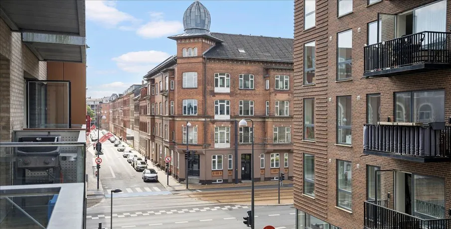 Velkommen til denne imponerende og markante ejendom på Østre Stationsvej i Odense. Lejligheden ligger tilbagetrukket på 2. sal, hvilket giver en rolig atmosfære midt i byens puls. Ejendommen er moderne og velholdt med attraktive fællesfaciliteter. Med en kombination af moderne design og funktionalitet, er dette en ejendom, der skiller sig ud og tilbyder alt, hvad du har brug for i en central bolig.Beliggenheden kan næppe blive bedre – midt i centrum af Odense. Fra lejligheden når du hurtigt gå-gademiljøet med caféer, restauranter og specialbutikker. Banegården ligger tæt på, hvilket gør pendling nemt og bekvemt. Kongens Have inviterer til afslappende stunder i grønne omgivelser, og Byens Bro giver en smuk og hurtig adgang til havnen. Her bor du i hjertet af det hele, men alligevel med en følelse af ro og tilbagetrukkethed.Lejligheden er lys og meget indbydende med lysindfald fra tre sider. Den er indrettet med en rummelig entre med garderobe og to store soveværelser, hvor det ene har faste skabe. Det funktionelle badeværelse har gulvvarme, bruseniche samt installation til vaskemaskine og tørretumbler. Køkken/alrum/stue-miljøet er stort og åbent, med køkkenet placeret centralt, alrummet mod vest og opholdsstuen mod øst. Fra alrummet er der udgang til en vestvendt altan, hvor du kan nyde eftermiddagssolen. Lejligheden har parketgulv i både værelserne og køkken/alrum/stue-miljøet, hvilket skaber en gennemgående stil. Desuden er der mulighed for at etablere et ekstra værelse i alrummet, hvis behovet opstår. I kælderen har du dit eget store depotrum, som giver ekstra opbevaringsplads.Denne lejlighed på Østre Stationsvej er indflytningsklar og perfekt til dig, der ønsker at bo centralt med moderne bekvemmeligheder og en lys, indbydende atmosfære. Kontakt os for en fremvisning – din nye drømmebolig venter på dig!