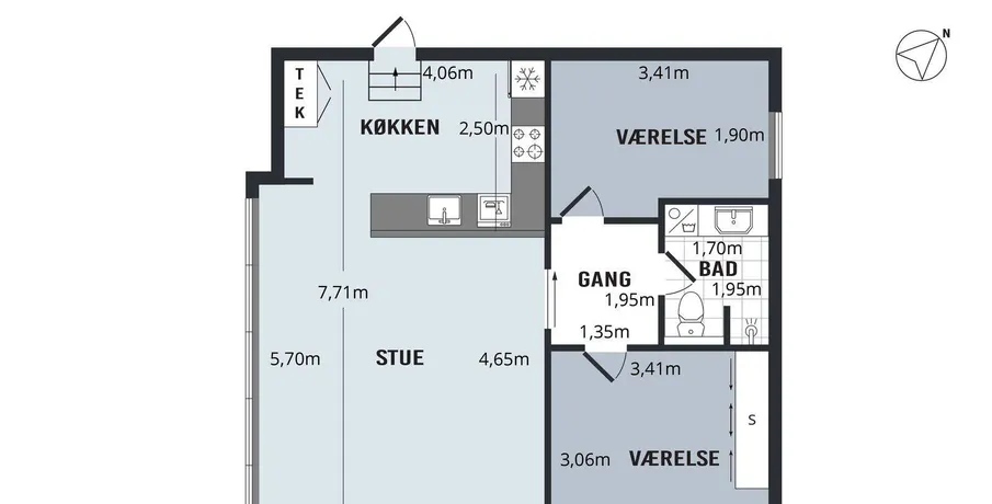 3 værelses lejlighed på 90 m2