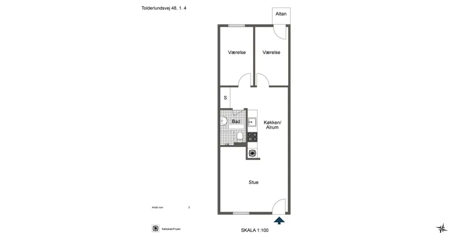 3 værelses lejlighed på 56 m2