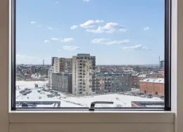 Det er tilladt at holde 1 hund eller 1 kat.Se de nærmere betingelser i afdelingens husorden. Bolig og fællesskab for voksne. Kalanderhuset er til dig, der ønsker at bo et sted, hvor fællesskabet og det tætte naboskab er i højsædet. Og hvor du selv har lyst til at bidrage aktivt ind i fællesskabet.Opskrivning til seniorbofællesskabet i Kalanderhuset sker ved at kontakte Civica på EMAIL / 63 133 133. Din opskrivning er ikke bindende, og du vil til enhver tid kunne sige ”nej tak”, hvis du skulle få tilbudt en bolig, men alligevel ikke er interesseret.Hvis du ønsker at se en af Kalanderhusets lejligheder, kan du kontakte vores samarbejdspartner Nybolig, som står for fremvisning: Karoline, tlf. Phone , EMAIL tlf. Phone , EMAIL eller Oliver, tlf.: Phone , EMAIL kan søges af personer over 40 år uden hjemmeboende børn.Efter førstegangsudlejningen udlejes boligerne til personer over 55 år uden hjemmeboende børn - hver anden gang med fortrin til 55-65 årige og hver anden gang efter opskrivnings-anciennitet for alle personer over 55 år uden hjemmeboende børn.Kalanderhuset består af 58 boliger i et miks af to- og treværelses boliger, i et spænd fra 64 til 110 m2. De 58 boliger er fordelt på fem opgange. Der er elevatorer i alle 5 opgange, der sikrer tilgængeligheden for beboerne og deres gæster. Der er 13 stk. 2-rums og 45 stk. 3-rums boliger. Stueboligerne har adgang til en lille terrasse og der er franske altaner til de resterende boliger. I hver opgang er der et fælleslokale, som er tænkt som satellitter. Et af lokalerne bruges eksempelvis som motionsrum med motionsmaskiner. Der er også et stort fællesområde, hvor alle beboere kan samles. Der ud over er der en gæstebolig placeret i forbindelse med et store fællesrum i stueetagen. Gæsteboligen er tiltænkt overnattende gæster af beboerne. Kalanderhuset ligger på grunden, hvor Dalum Papirfabrik lå. Det er et nyt boligområde, der har en attraktiv placering – midt i naturen, tæt på både centrum, motorvej og den lokale togbane. De karakteristiske fysiske kendetegn fra papirfabrikken bevares, og dermed fastholdes historien – til glæde for hele byen og for forbipasserende. Boligområdet forener det urbane med det grønne, da der trækkes grønne kiler ind i boligområdet fra Odense Å.