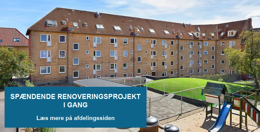 Afdelingen er beliggende i Randers C og består af lyse lejligheder, som løbende er blevet renoveret. Boligerne har gode parkeringsmuligheder, eget fællesvaskeri og en hyggelig legeplads. Afdelingen ligger meget tæt på Værket, midtbyen, indkøbsmuligheder, og der er nem adgang til adskillig busforbindelser. Der er ligeledes kort afstand til daginstitutioner og skoler.. Afdelingen har lavet en kollektiv tv-aftale med YouSee se mere her. Renovering af køkken og bad m.m.. . På et ekstraordinært afdelingsmøde d. 22. januar 2024 blev renoveringsprojektet godkendt af beboerne. Alle boligerne skal have nyt køkken og bad, nye tekniske installationer samt etablering af balanceret ventilation. Vi forventer opstart på renoveringsprojektet i februar 2025.. Når renoveringen er gennemført – medfører det en huslejestigning på 51,47%. Dette svarer til en gennemsnitlig stigning på 26,54 kr. pr. m2 pr. mdr.(Udregn den gennemsnitlige stigningen pr. måned ved at gange 26,54 kr. med lejemålets m2). Bliv opdateret på renoveringsprojektet i afdelingen. (8900 Randers C, Fabersvej 44)