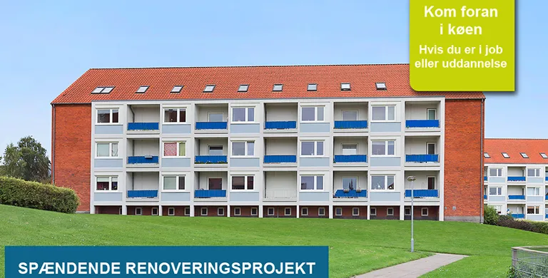 Afdelingen er populær blandt unge mennesker på grund af den lave husleje. Lejlighederne har gamle badeværelser og køkkener, og de er udstyret med komfur. Der er altan til alle lejlighederne og fællesvaskeri.. 1 indekat er tilladt.Loftrum kan lejes, ved interesse, kontakt boligbutikken på tlf. Telefon . Afdelingen har en lille græsplæne og et mindre gårdareal. Den ligger tæt på Skovbakken, skole, børnehave, indkøbsmuligheder og busforbindelser til midtbyen.. Afdelingen har lavet en kollektiv tv-aftale med YouSee se mere her. Særlige udlejningsregler:. I denne afdeling kan du få fortrin, hvis du er i job eller under videregående uddannelse. Læs mere om de særlige udlejningsregler.. Renovering af køkken og bad. På et afdelingsmøde den 13. september 2021 godkendte beboerne et renoveringsprojekt, hvor køkken og bad skal moderniseres i alle boliger. Derudover skal der installeres balanceret ventilation. . Læs mere om renoveringsprojektet her. (8930 Randers NØ, Mærsk Andersensvej 2 - 18)