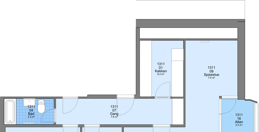 3 værelses lejlighed på 84 m2