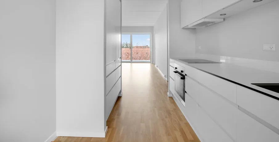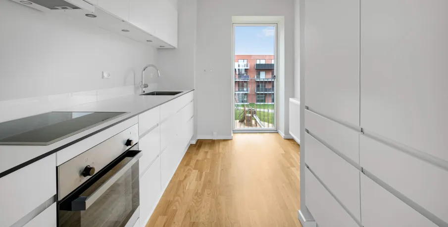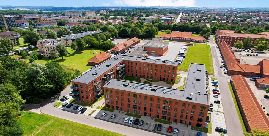 OBS: Billederne er af en prøvebolig og dermed vejledende. Se plantegning. Ejendommen I Randers Kaserne kan du bo i én af de 96 moderne boliger, som er opført i 2020. Ejendommen tilbyder et bredt udvalg af boliger, der spænder fra 2 til 4-værelses lejligheder på mellem 67 og 106 kvm. Alle boliger har en række bekvemmeligheder, herunder eget depotrum samt egen altan eller terrasse, hvor du kan nyde solen og omgivelserne. Ejendommen tilbyder yderligere bekvemmeligheder såsom elevator og gratis parkering. Det er muligt at ansøge om dispensation for ét husdyr. Boligerne Indenfor finder du store, rummelige køkkener indrettet med køkken/alrum i åben forbindelse med stuen, skabt til fællesskab og liv. Køkkenelementerne er fra Svane, og alle hårde hvidevarer er fra Siemens, hvilket sikrer høj kvalitet og funktionalitet. Badeværelserne er designet med gulvvarme, en rummelig bruseniche med Rain Shower bruser samt lejlighedens vaskemaskine og tørretumbler. Området Beliggenheden er ideel med kort afstand til Langvang Idrætscenter, Regionshospitalet samt pasningsmuligheder, skoler og uddannelsessteder. Nordre Fælled ligger også lige udenfor døren og giver mulighed for frisk luft og naturskønne omgivelser. Området omkring Randers Kaserne byder på alt, hvad du har brug for til dagligdagen med nærliggende og gode indkøbs- og transportmuligheder. Den nordlige del af Randers er præget af en hyggelig og fredelig atmosfære, og her er der plads til både singler, par, familier og seniorer.