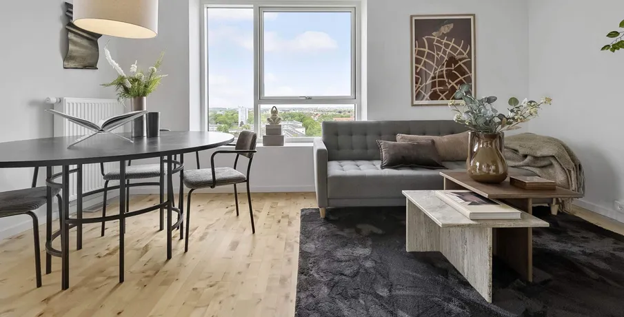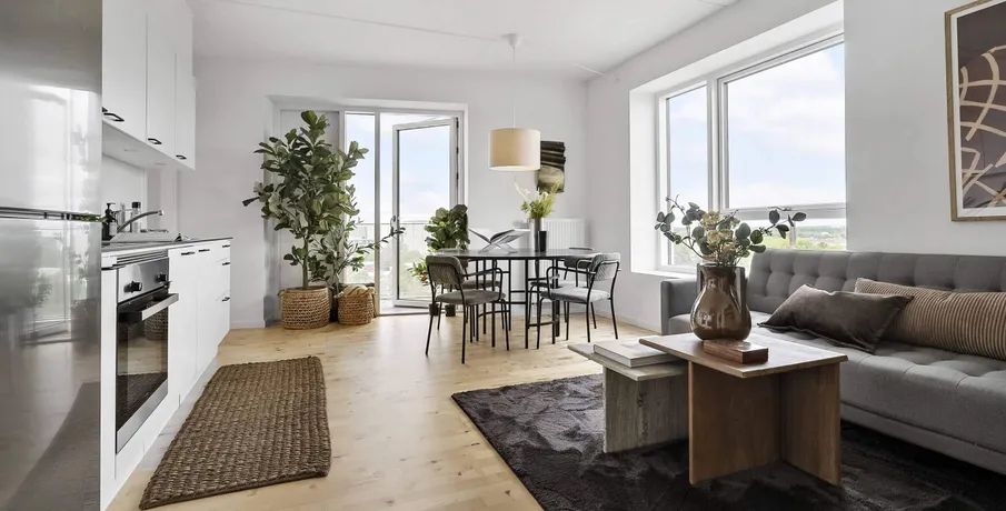 Velkommen til Rødovre Port – nybyggeri med moderne komfort og perfekt beliggenhed.. Denne velindrettede 3-værelses lejlighed på 75 m² er en del af det nye og attraktive boligområde Rødovre Port. Her får du en moderne og indflytningsklar bolig med gennemtænkte løsninger, kvalitetsmaterialer og masser af lys.. Lejligheden byder på et åbent køkken-alrum. Køkkenet er stilrent og opført i tidløst design med alle de nødvendige hårde hvidevarer. Alt står klar til både hverdagens måltider og hyggelige aftener med gæster. . Der er to værelser: et rummeligt soveværelse og et ekstra værelse, der kan bruges som børneværelse, kontor eller gæsteværelse. Begge rum har store vinduespartier, som giver et dejligt lysindfald og skaber en lys og åben atmosfære. På badeværelset er der god plads, og her er både vaskemaskine og tørretumbler.. Udover det er der en kæmpe altan med udgang både fra et af værelserne og køkken-alrummet af. Den kan nydes i det gode vejr.. Lige uden for døren finder du Rødovre Ports hyggelig gågade med dagligvarer fra Spar og Normal, lækre fristelser fra Lagkagehuset og Pizza Hut, frisør, neglesalon og meget mere.. For enden af enden af gågaden ligger Rødovre Station, som giver dig nem og hurtig adgang til København og omegnen. Samtidig er du tæt på grønne, naturskønne områder – ideelt til en gåtur eller løbetur i det fri. Motorvejsnettet ligger også lige i nærheden, hvilket gør det let at komme rundt, uanset hvor du skal hen.. Der kan ansøges om tilladelse til at holde ét kæledyr med en maksimal vægt på 25 kg.. Der er mulighed for at købe parkeringslicens til parkeringskælderen under bygningen.. Lejemålet er uopsigeligt i de første 9 måneder.. Bemærk: Billeder er vejledende og ikke nødvendigvis fra den samme lejlighed, men fra samme ejendom. Der tages forbehold for eventuelle uoverensstemmelser. . // Boligen udlejes af en professionel udlejer, og der er tilknyttet viceværtservice og administrator til ejendommen. //
