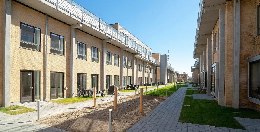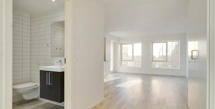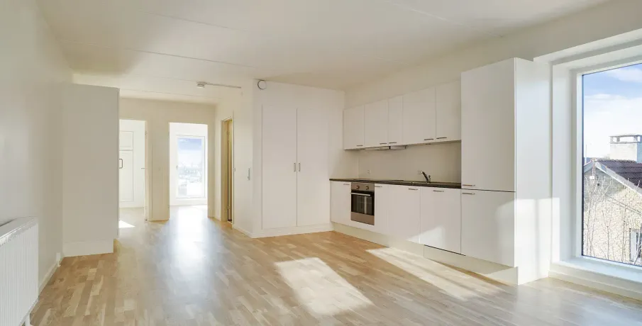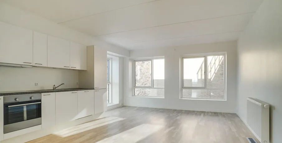 . På Møllevangen 1-141 finder du 1- til 6-værelses lejligheder. Der er altså plads til alle og lige det hjem, du drømmer om. De mindre lejligheder henvender sig til singlen, den studerende eller det unge par, mens de større lejligheder er oplagte til familier.. Alle lejligheder har et smukt lysindfald fra boligernes store vinduer. Flere af lejlighederne er i to etager, som skaber et naturligt skel mellem det fælles opholdsrum med køkken-alrum og boligens værelser. De fleste af lejlighederne har egen altan eller terrasse.. Hårde hvidevarer. Der er alt i hårde hvidevarer.. Husdyr. Lejere kan ansøge om tilladelse til at holde indekat. Se vores samlede husdyrsregler. her. .. Parkering. Der er fri parkering i området.. Fælles arealer. Ejendommen har flere udendørs fællesområder. På toppen af bygningen er der flere terrasser, og mellem bygningerne er der et hyggeligt gårdrum med legeplads til de mindste.. Læs mere om boligen. De viste billeder kan være fra et andet men tilsvarende lejemål i samme ejendom. Mindre afvigelser kan derfor forekomme..